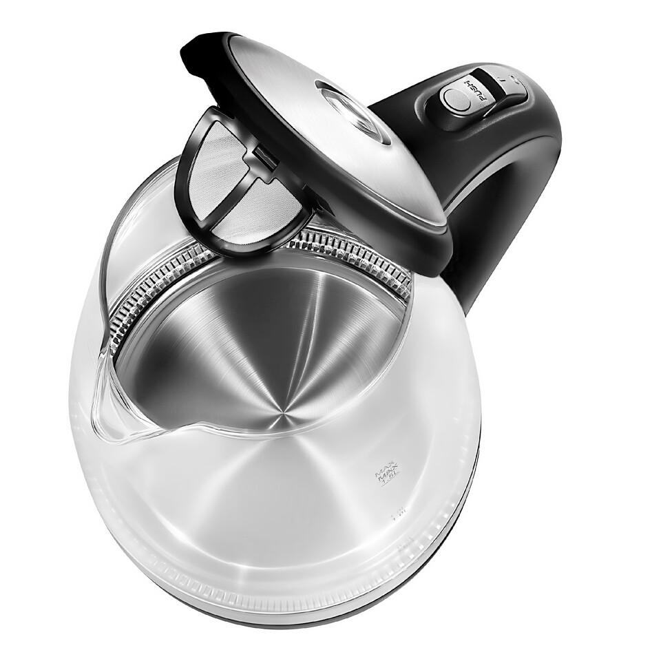 Электрический чайник EWK 0904 G – стильный и надежный прибор, обеспечивающий быстрое кипячение воды благодаря мощности 2200 Вт и объему 1,7 л. Корпус выполнен из высококачественного термостойкого стекла, прошедшего инструментальную проверку на однородность и чистоту, и оснащен удобной мерной шкалой для точного контроля уровня воды. Механизм автооткрытия крышки облегчает залив, а яркая внутренняя подсветка придает эстетическую привлекательность. Чайник оборудован скрытым нагревательным элементом и поворотной подставкой на 360°. Встроенные системы автоотключения при отсутствии воды и закипании, а также защита от поражения электрическим током (класс I), гарантируют безопасность эксплуатации.