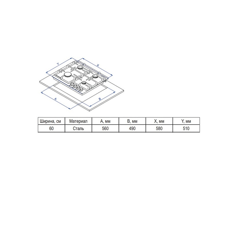 Размер варочной панели 60см