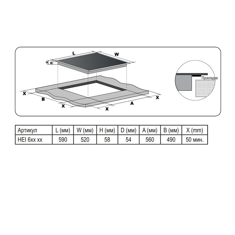 Размер варочной панели 60см