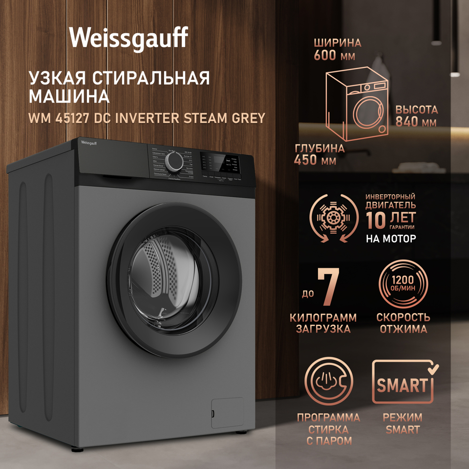 Weissgauff WM 45127 DC Inverter Steam Grey