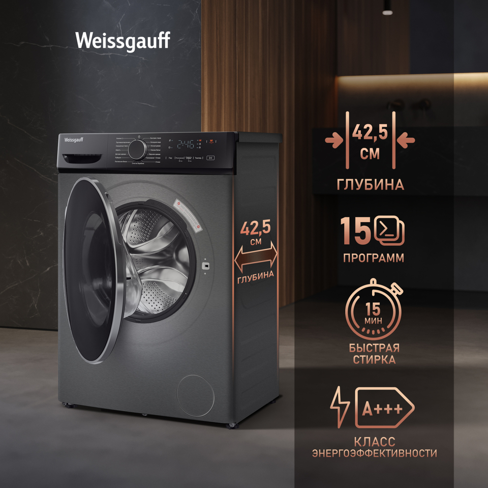Стиральная машина с фронтальной загрузкой Weissgauff WM 4627 Touch Inverter Steam Grey