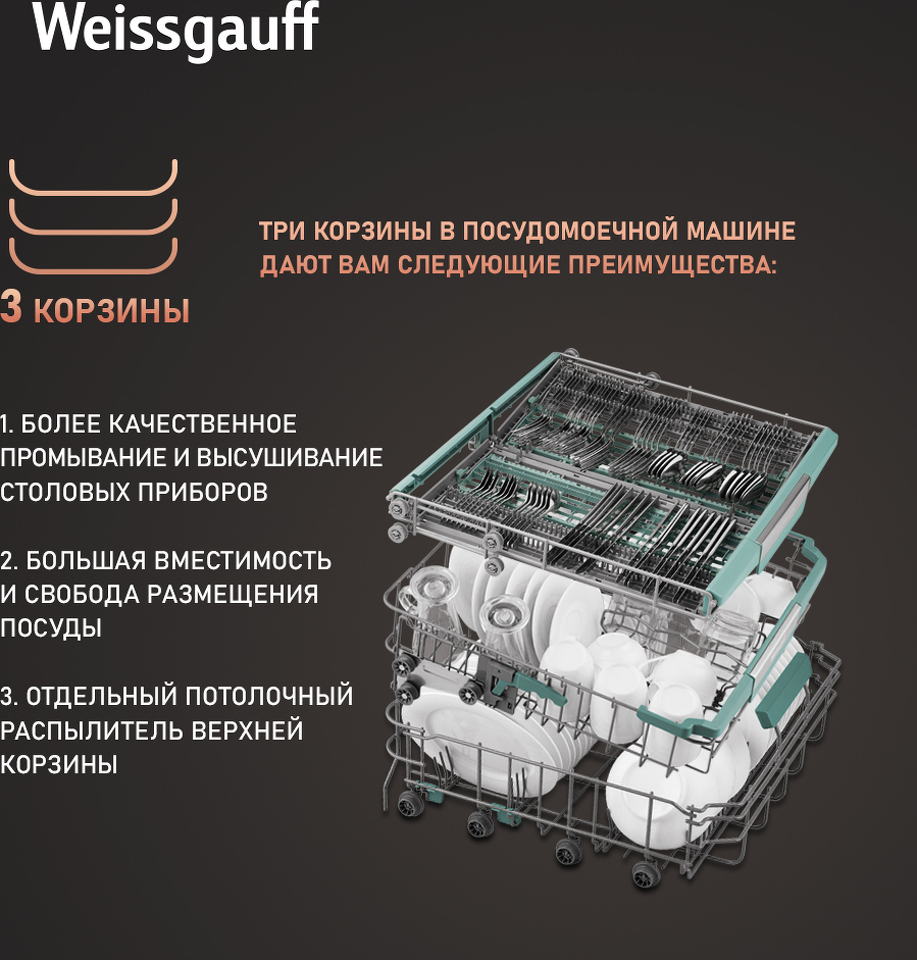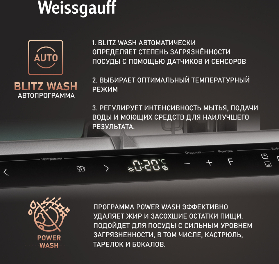 Фото Посудомоечная машина 60см встраиваемая Weissgauff BDW 6151 Inverter Touch AutoOpen Timer Floor