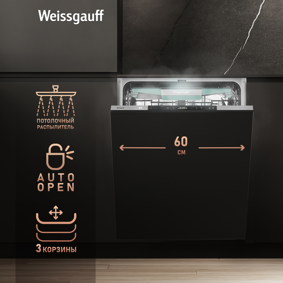 Посудомоечная машина 60см встраиваемая Weissgauff BDW 6151 Inverter Touch AutoOpen Timer Floor