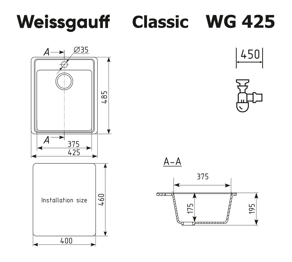 Гранитная мойка Weissgauff WG 42503 Classic Light Grey