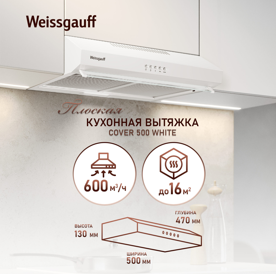 Фото Козырьковая вытяжка Weissgauff Cover 500 White