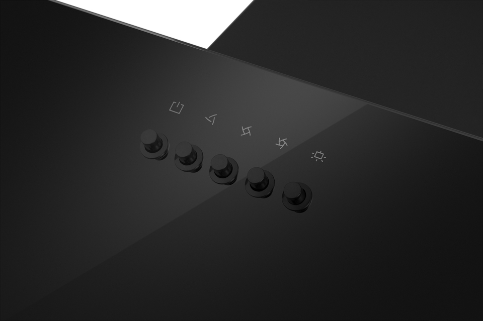 • Надежный кнопочный блок управления позволит вам с легкостью включить или выключить вытяжку, выбрать необходимую скорость и управлять встроенным освещением