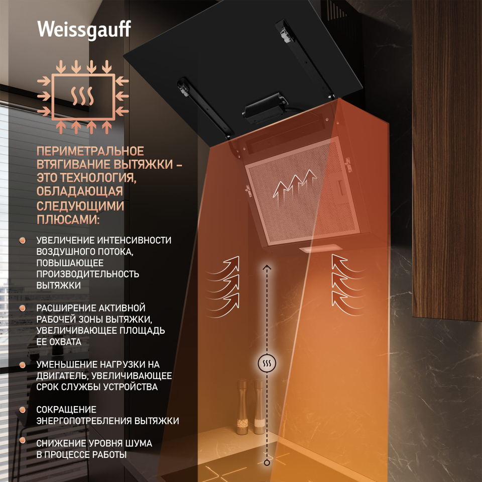 • Низкий уровень шума сделает работу с данной вытяжкой по-настоящему комфортной и приятной, ведь мы в Weissgauff знаем, как добиться высокой производительности без лишнего шума!