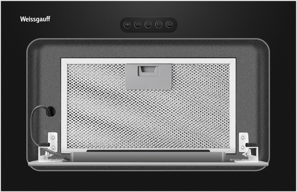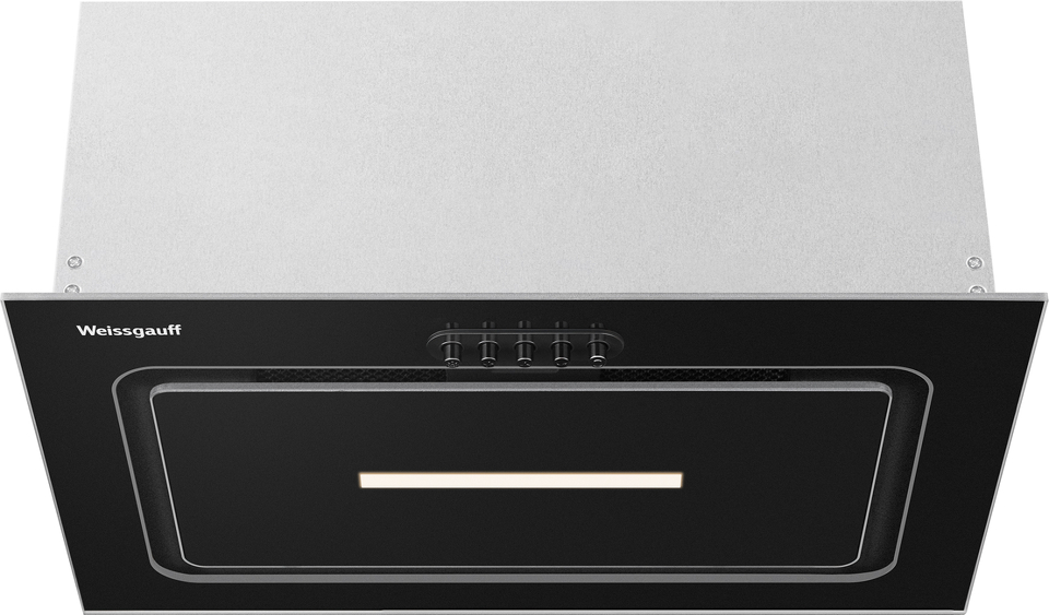 Полностью встраиваемая вытяжка от Weissgauff, воплощающая в себе безупречный дизайн и высокую эффективность, оснащена интуитивно понятным кнопочным управлением и выполнена в дизайне врезного блока с панелью стильного черного цвета!