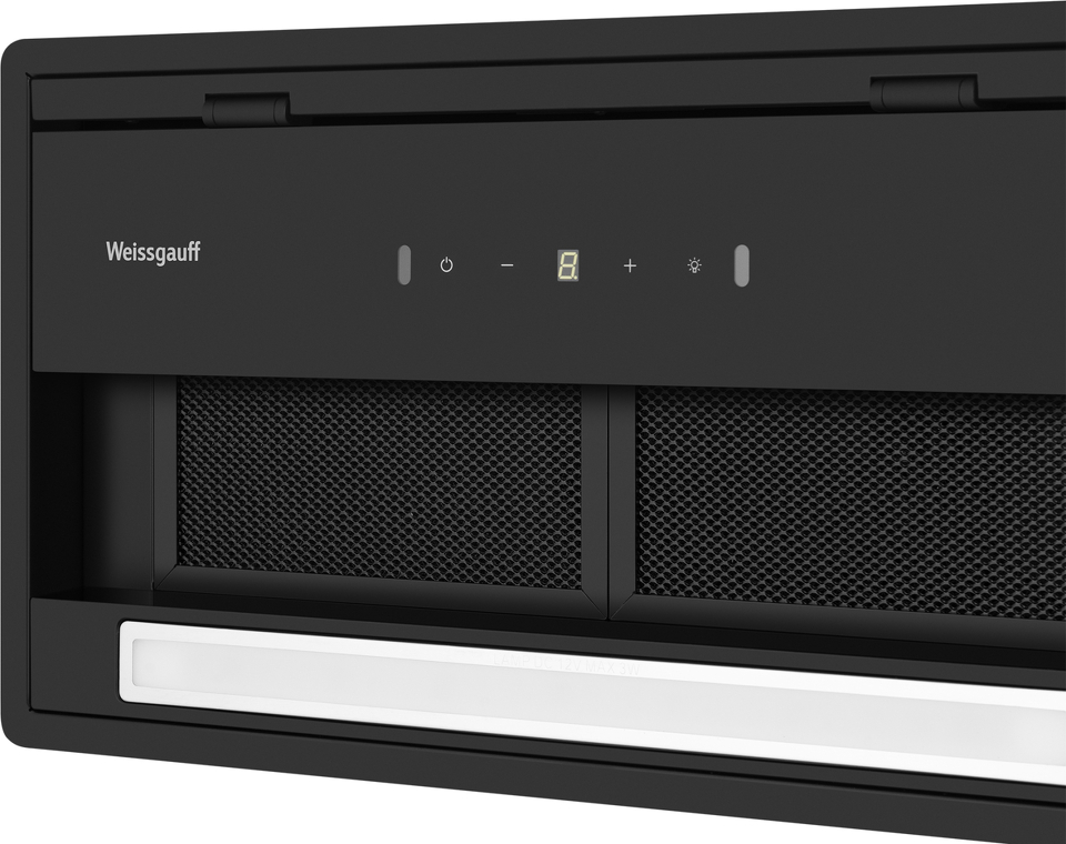 Полностью встраиваемая вытяжка от Weissgauff, оснащена как сенсорным управлением на корпусе, так и управлением жестами, что делает работу с ней ещё удобнее! Модель выполнена в дизайне врезного блока с панелью стильного черного цвета и справится со своей задачей даже на самой большой кухне!