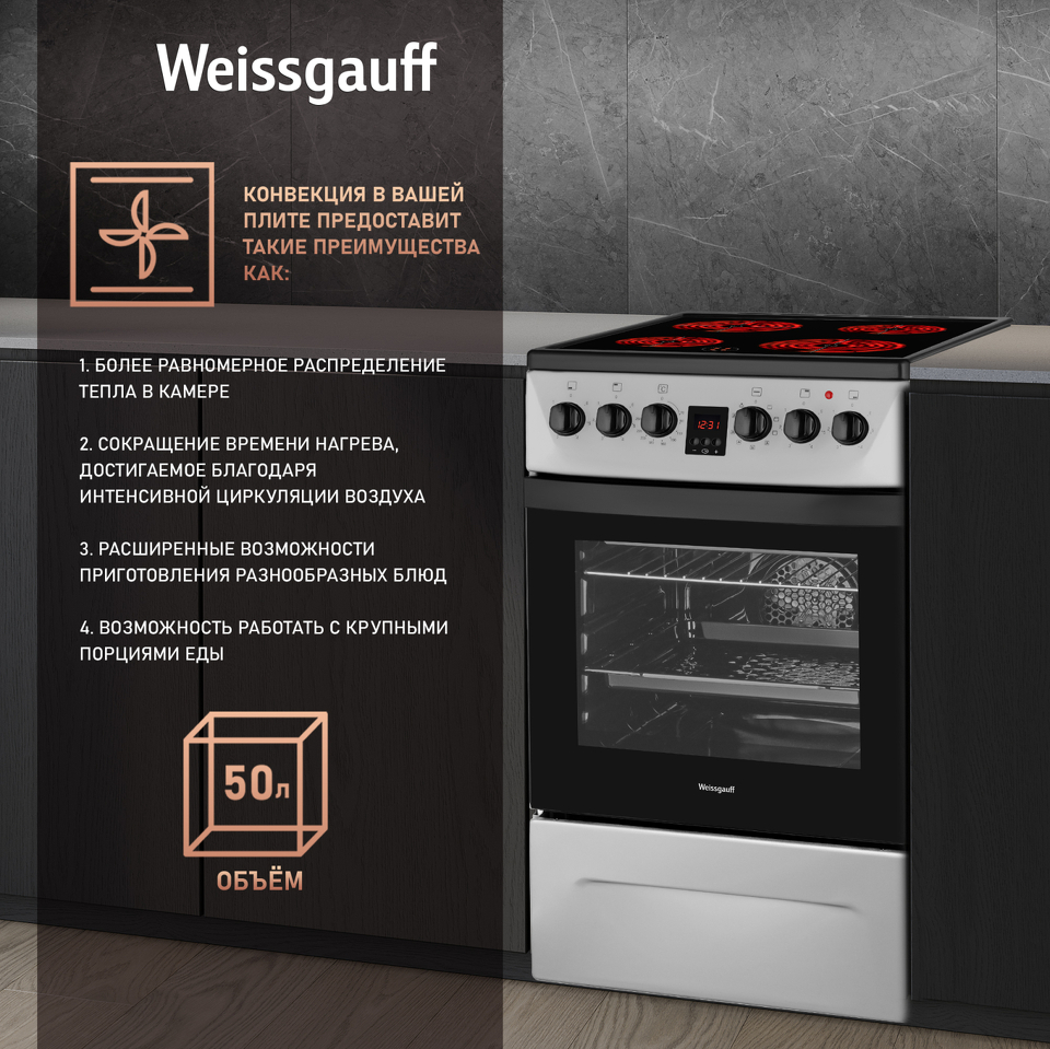 Объем духовки, л 50