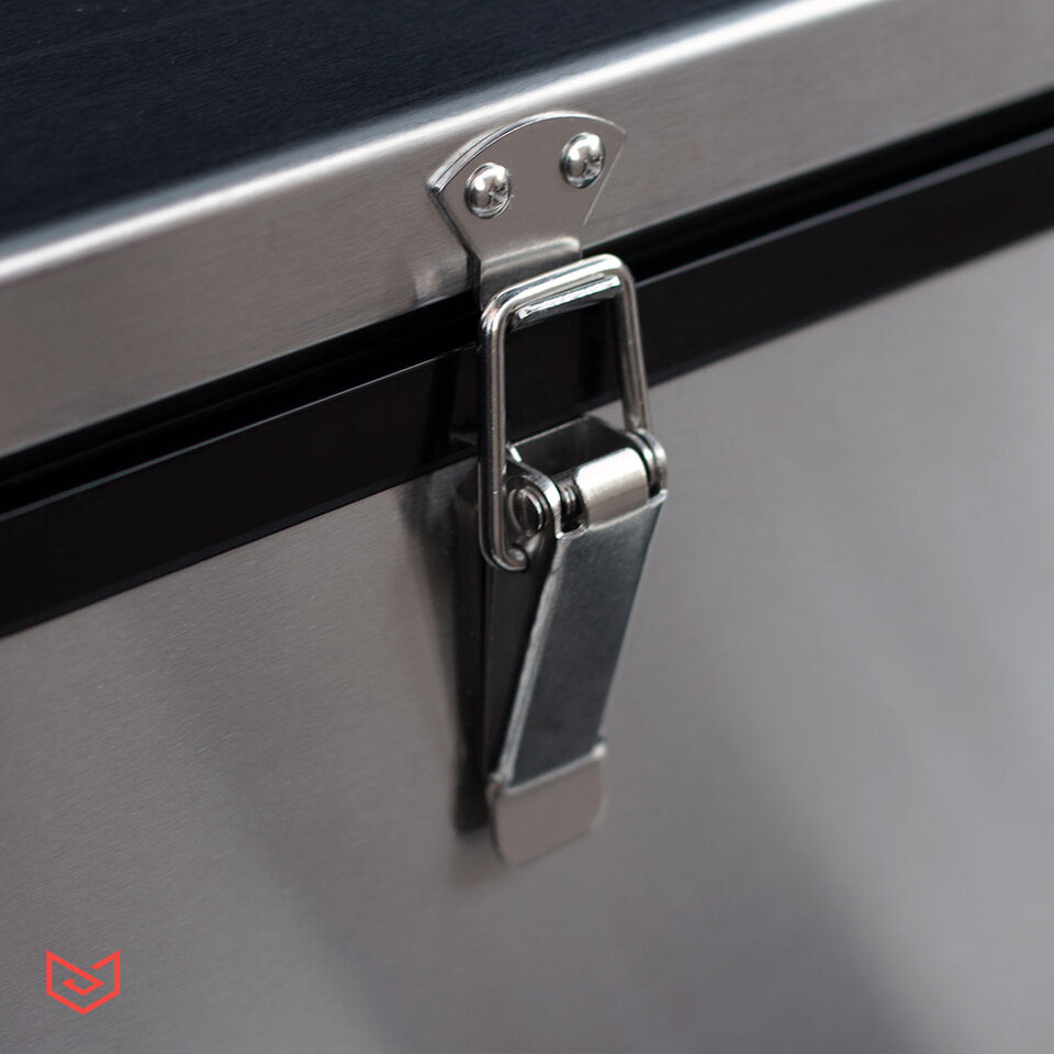 Надёжная фиксация крышки с помощью двух накидных защёлок, что исключает самопроизвольное открывание при движении;