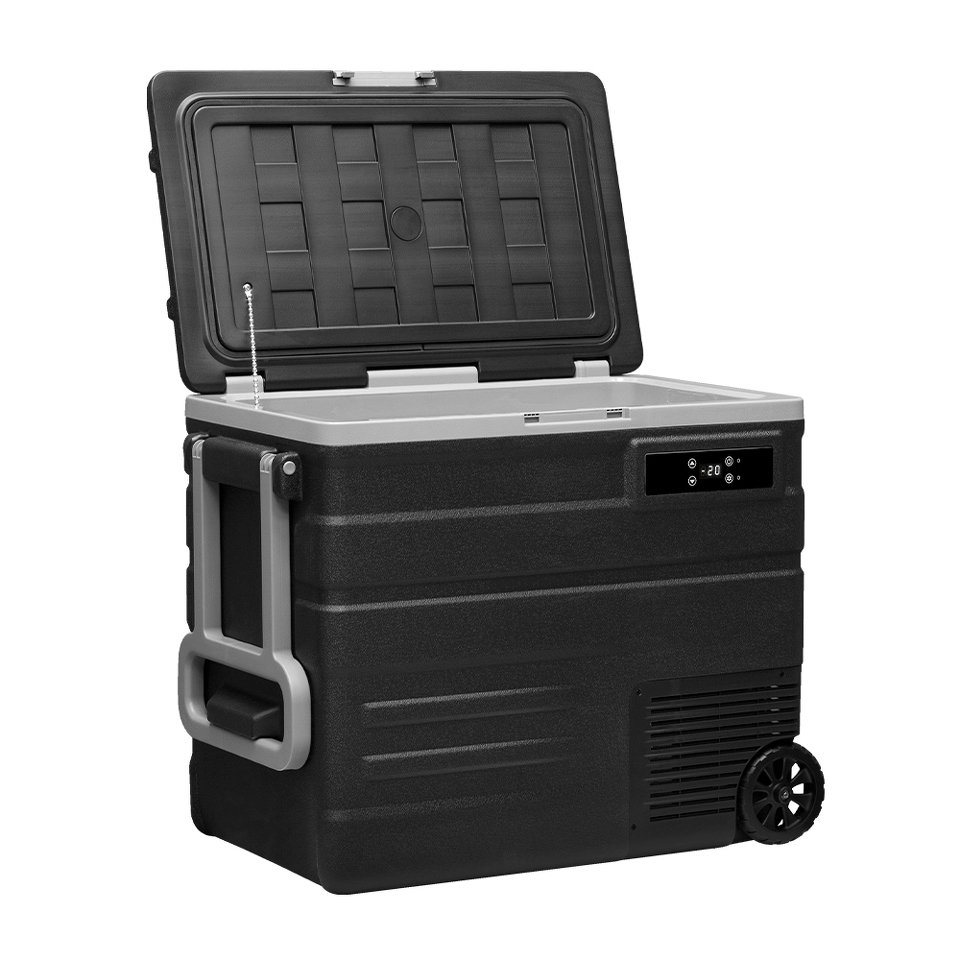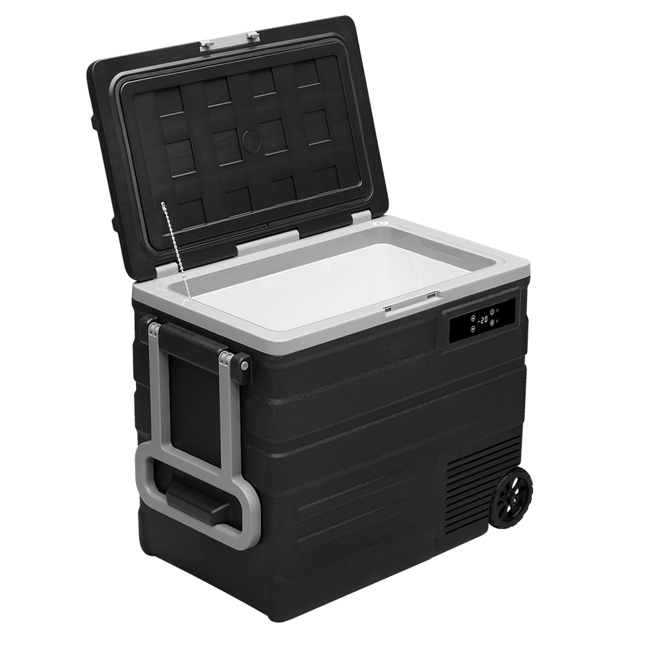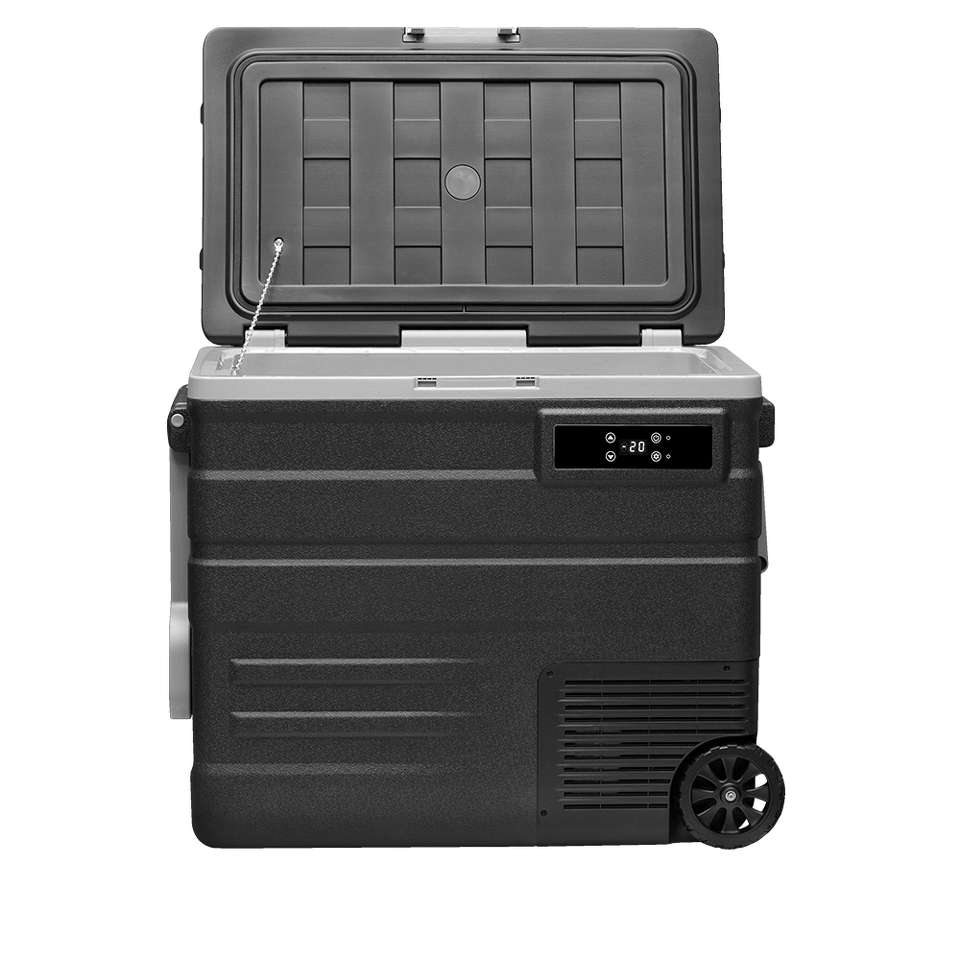 На корпусе есть панель управления с дисплеем, с её помощью можно настроить рабочую температуру от +20 °C до -20 °C, автохолодильник будет автоматически поддерживать её. Так же можно выбрать один из двух режимов работы. Режим «MAX» (Турборежим) позволит быстро заморозить продукты, благодаря работе на максимальной мощности. Выбрав «ECO» (Экономичный) режим работы, холодильник будет дольше достигать заданного значения температуры, но при этом расходует меньше электроэнергии. В случае каких-либо сбоев в работе, на дисплее отображается код ошибки, что подскажет в чём именно проблема.