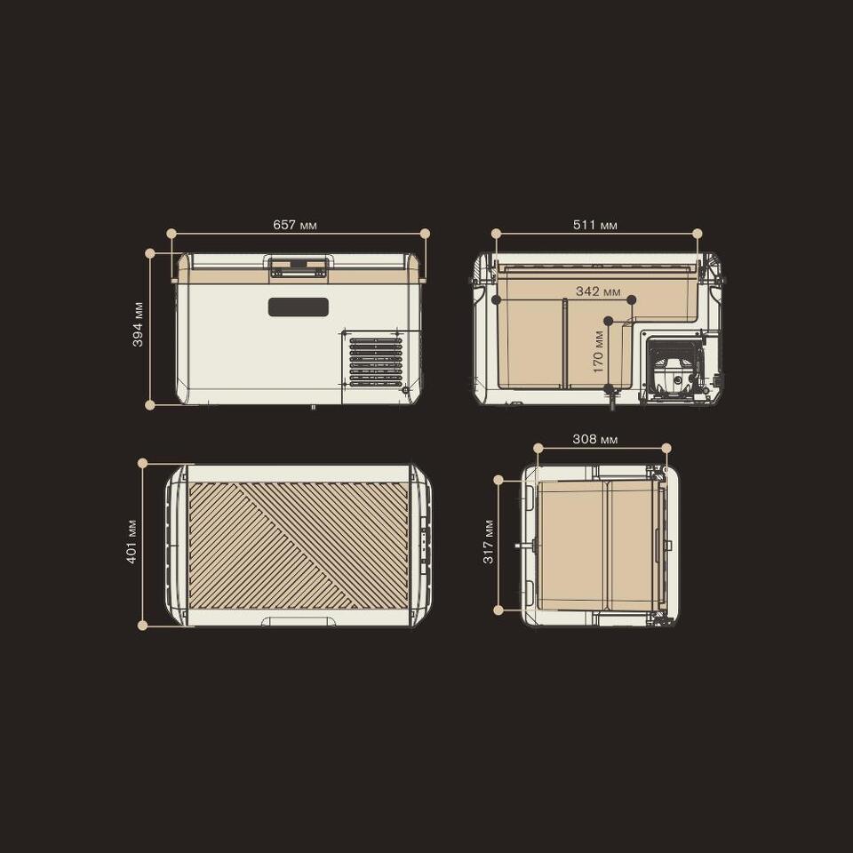 Корпус изготовлен из прочного пластика и прекрасно изолирован благодаря полиуретановой пене высокой плотности. Это гарантирует долгосрочную эксплуатацию и эффективное сохранение температуры. Благодаря компактным размерам холодильник легко разместить в автомобиле или взять его с собой в поход.