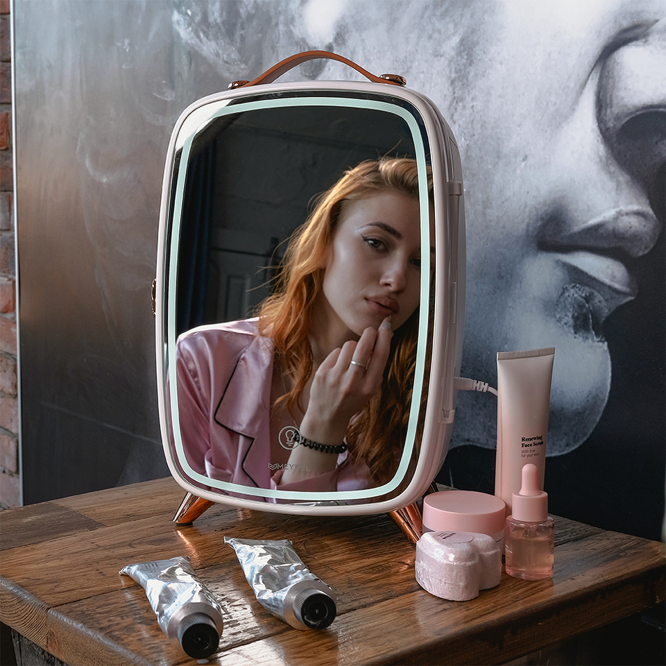 Инженеры MEYVEL рекомендуют размещать бьюти-холодильники в ванной комнате, где температура колеблется от +20 до +25 °C, такое расположение поможет холодильнику поддерживать оптимальную температуру для длительного хранения вашей косметики. Также на двери установлено зеркало с LED-освещением. Регулируйте задние ножки холодильника, для его установки под нужным углом, это позволит наносить макияж не сутулясь и не требовать особого места для установки холодильника.
