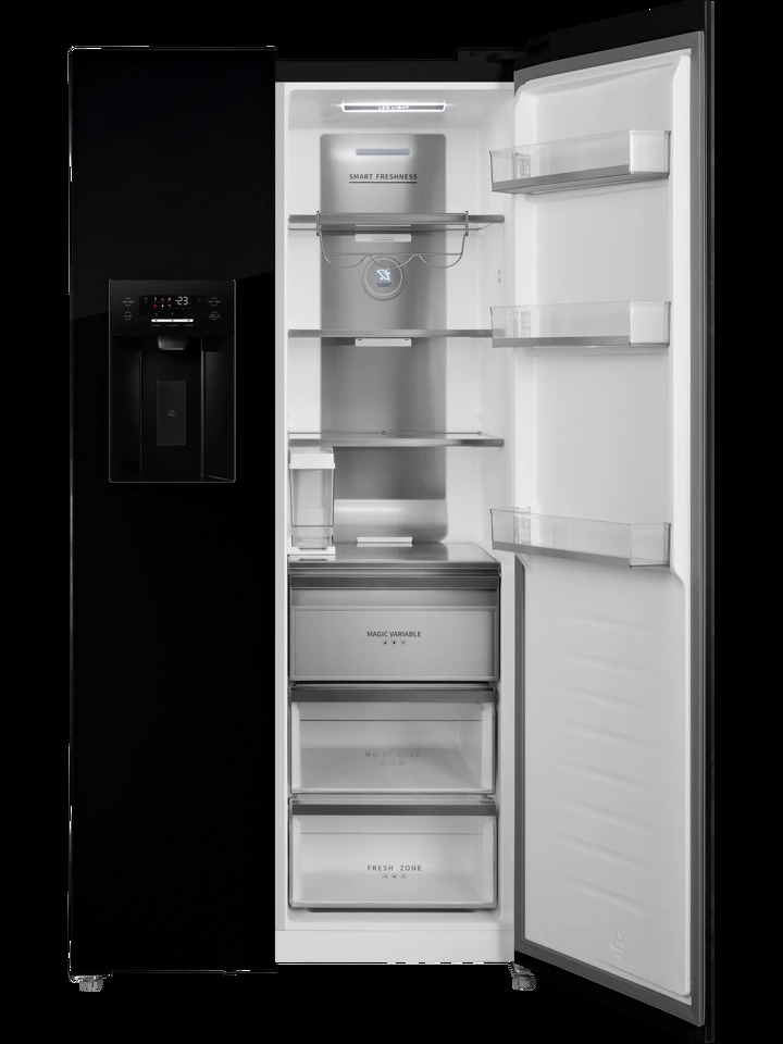 Вместительный двухкамерный холодильник HIBERG i-RFS 655 GB с возможностью встраивания — это идеальный выбор для тех, кто ценит современный подход к хранению продуктов и выразительный дизайн. Технологии для создания свежести Встроенный ледогенератор открывает дополнительные сценарии использования и значительно расширяет функциональность модели. Диспенсер позволяет получить кубики льда, ледяную крошку или холодную воду. Ёмкость для воды рассчитана на 3 литра, а производительность ледогенератора достигает до 1,5 кг льда в сутки — оптимально для семьи и приёма гостей. Удобство и комфорт Система Total No Frost предотвращает образование наледи и инея, избавляя от необходимости ручного размораживания. Технология Metal Cooling снижает температурные колебания при открывании дверей и помогает поддерживать стабильные условия хранения. Инверторный компрессор обеспечивает тихую работу — уровень шума не превышает 38 дБ — и высокую энергоэффективность класса A++. Сочетание LED и Ambient-подсветки обеспечивает отличный обзор внутреннего пространства, а фантомный сенсорный дисплей, скрытый за фасадом из чёрного стекла, подчёркивает минималистичный дизайн и позволяет точно и интуитивно настраивать параметры работы. Эргономика и функциональность В холодильной камере предусмотрены 4 полки из закалённого стекла с регулировкой по высоте, два выдвижных ящика для овощей и фруктов, а также полка для бутылок. Морозильное отделение оснащено 3 стеклянными полками, 3 ящиками и отсеком для хранения льда, что делает организацию пространства удобной и наглядной. Отдельного внимания заслуживает Flex Zone с диапазоном температур от –4 °C до +4 °C — решение, которое позволяет гибко адаптировать холодильник под текущие задачи и разные сценарии хранения. Основные преимущества: Общий объём 580 литров — оптимально для большой семьи Льдогенератор до 1,5 кг льда в сутки (кубики, ледяная крошка, холодная вода) Система Total No Frost — без ручного размораживания Фантомный сенсорный дисплей Flex Zone с регулировкой температуры от –4 °C до +4 °C Мощность замораживания до 10 кг/сутки Класс энергоэффективности A++ и низкий уровень шума (38 дБ) Диспенсер для воды и льда LED и Ambient-подсветка Возможность встраивания в кухонный гарнитур Холодильник HIBERG i-RFS 655 GB в фасаде из чёрного стекла станет не только практичным решением для хранения продуктов, но и выразительным акцентом современного интерьера. Гарантия на холодильники HIBERG — 2 года.