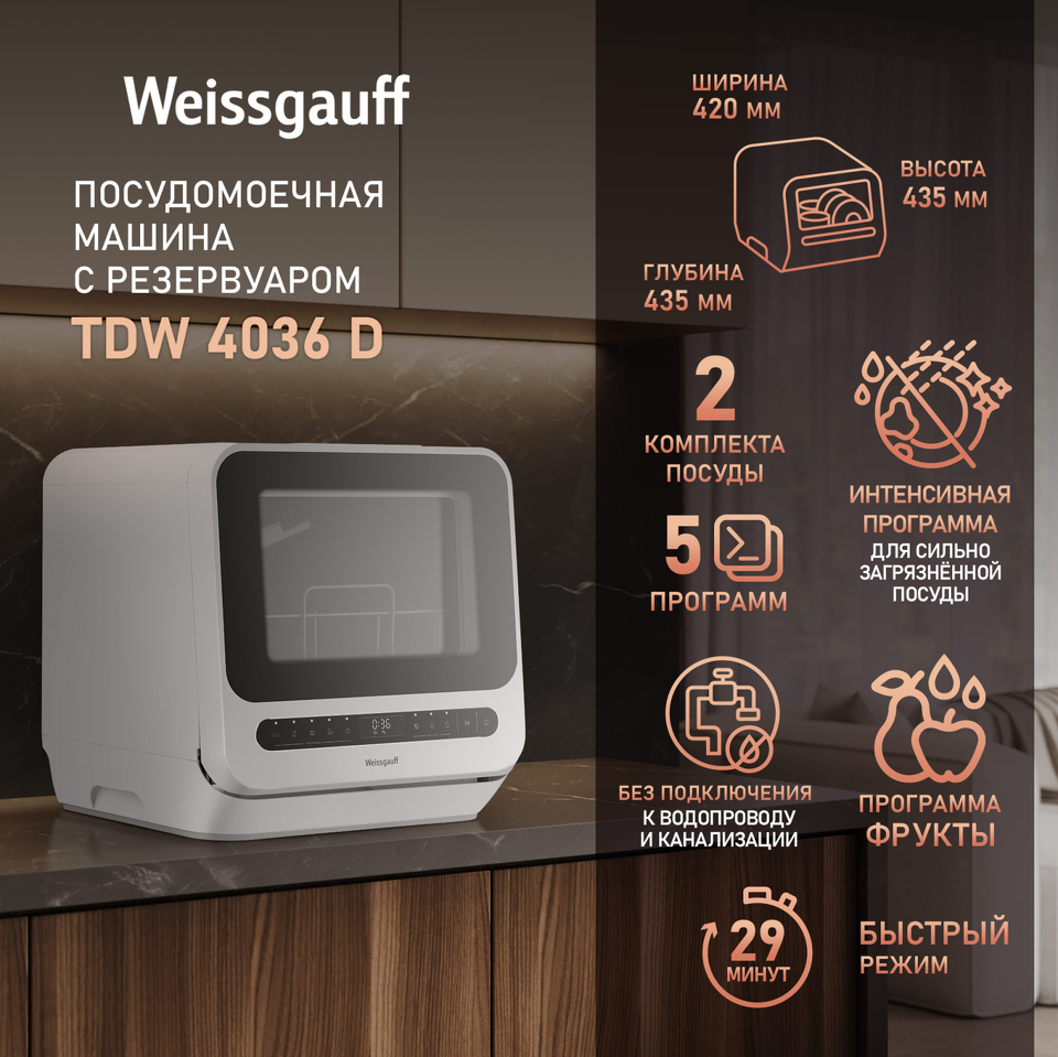 Фото Посудомоечная машина компактная Weissgauff TDW 4036 D