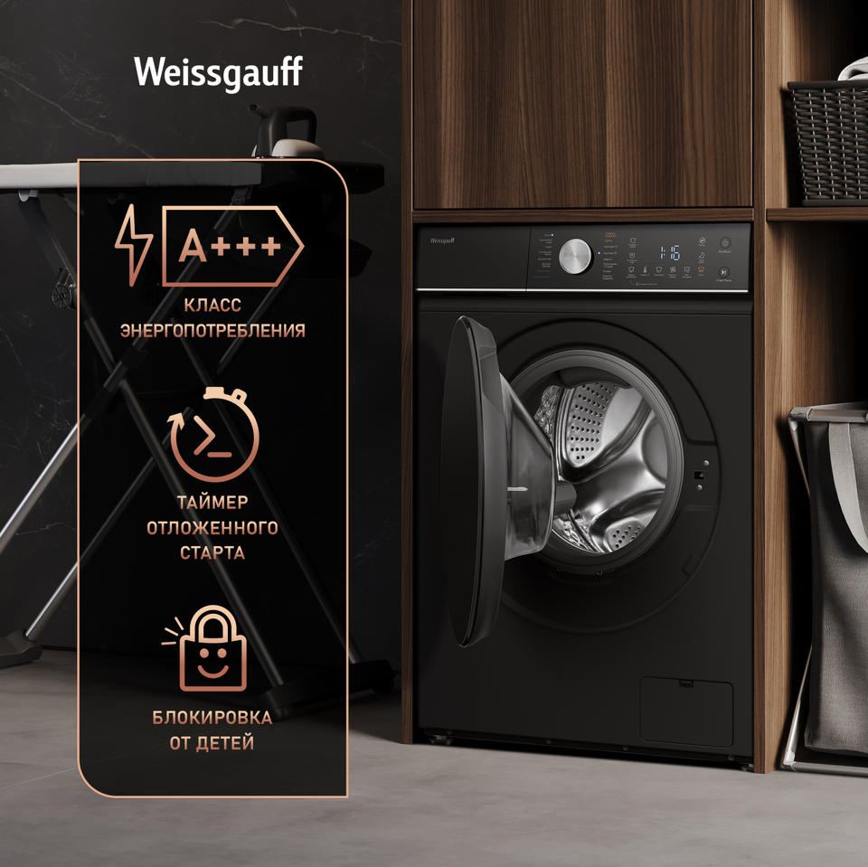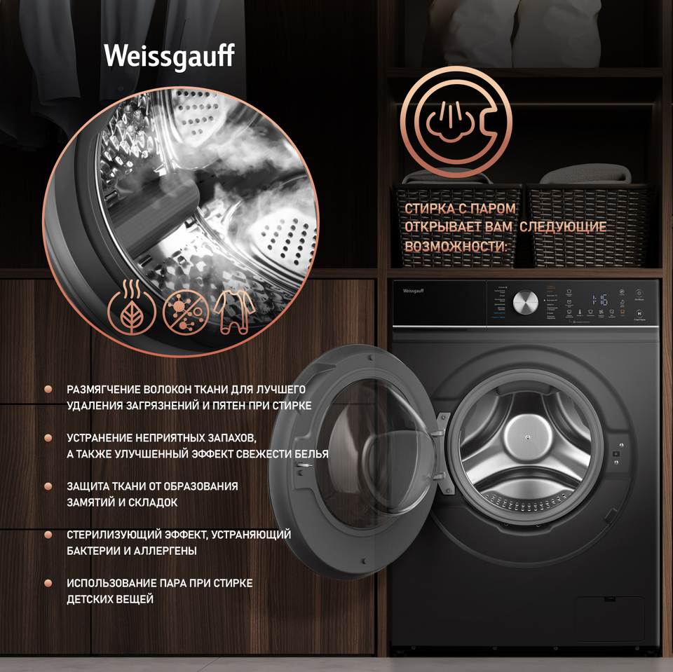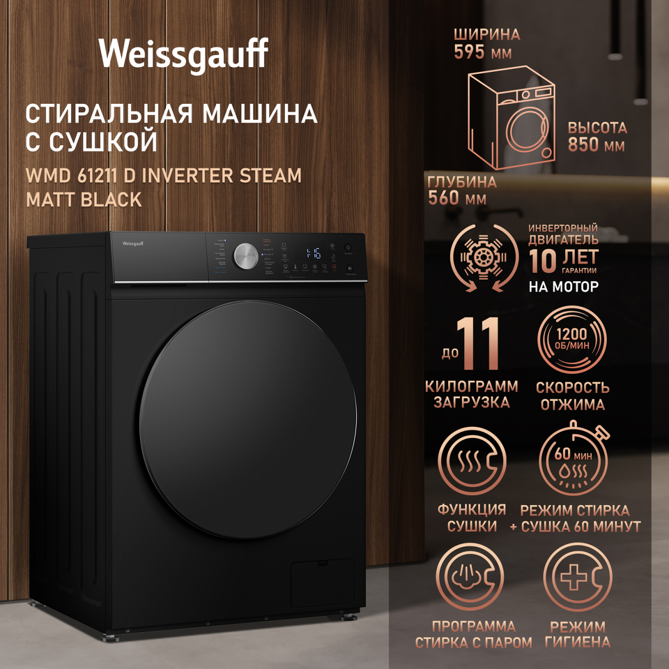 Стиральная машина с фронтальной загрузкой Weissgauff WMD 61211 D Inverter Steam Matt Black