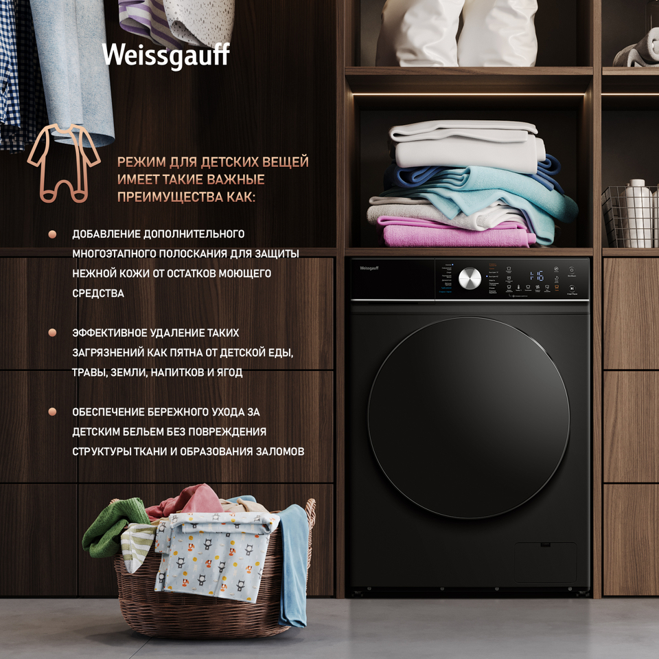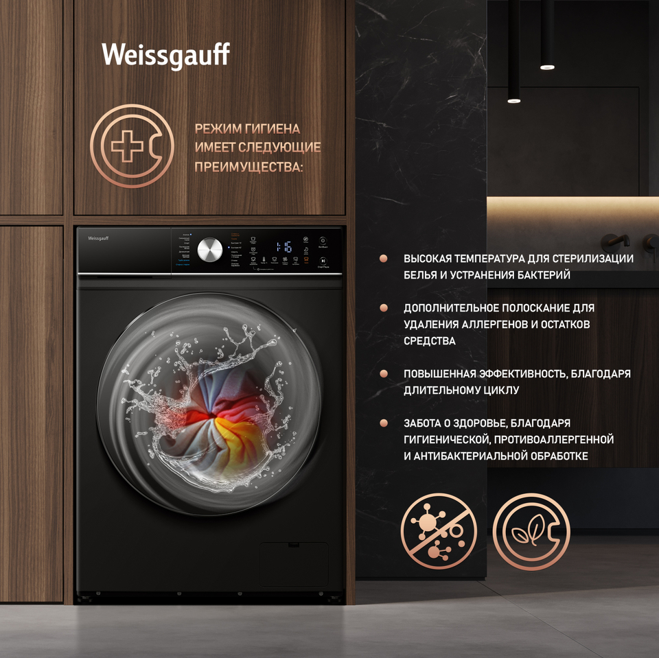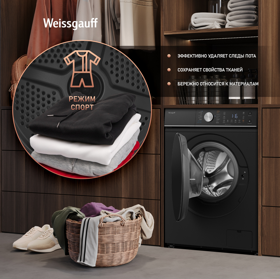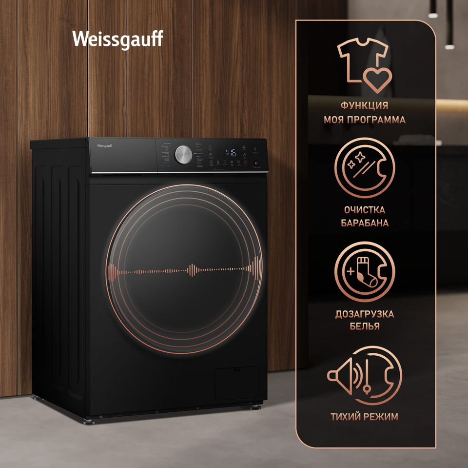 Стиральная машина с фронтальной загрузкой Weissgauff WMD 61211 D Inverter Steam Matt Black