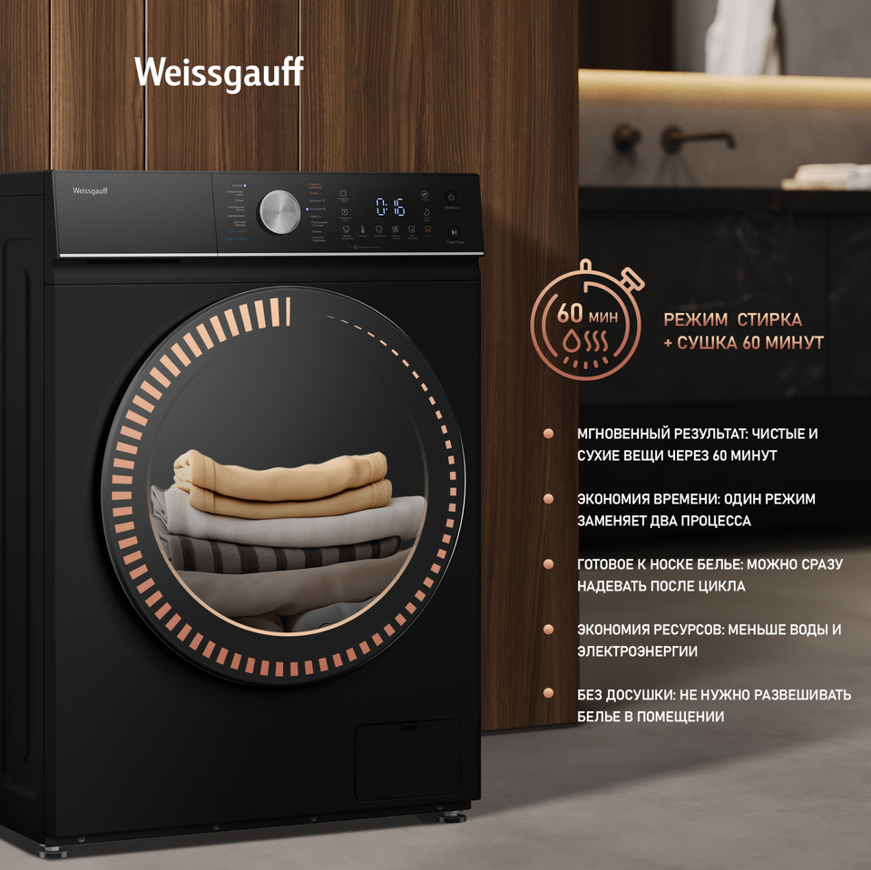Фото Стиральная машина с фронтальной загрузкой Weissgauff WMD 61211 D Inverter Steam Matt Black