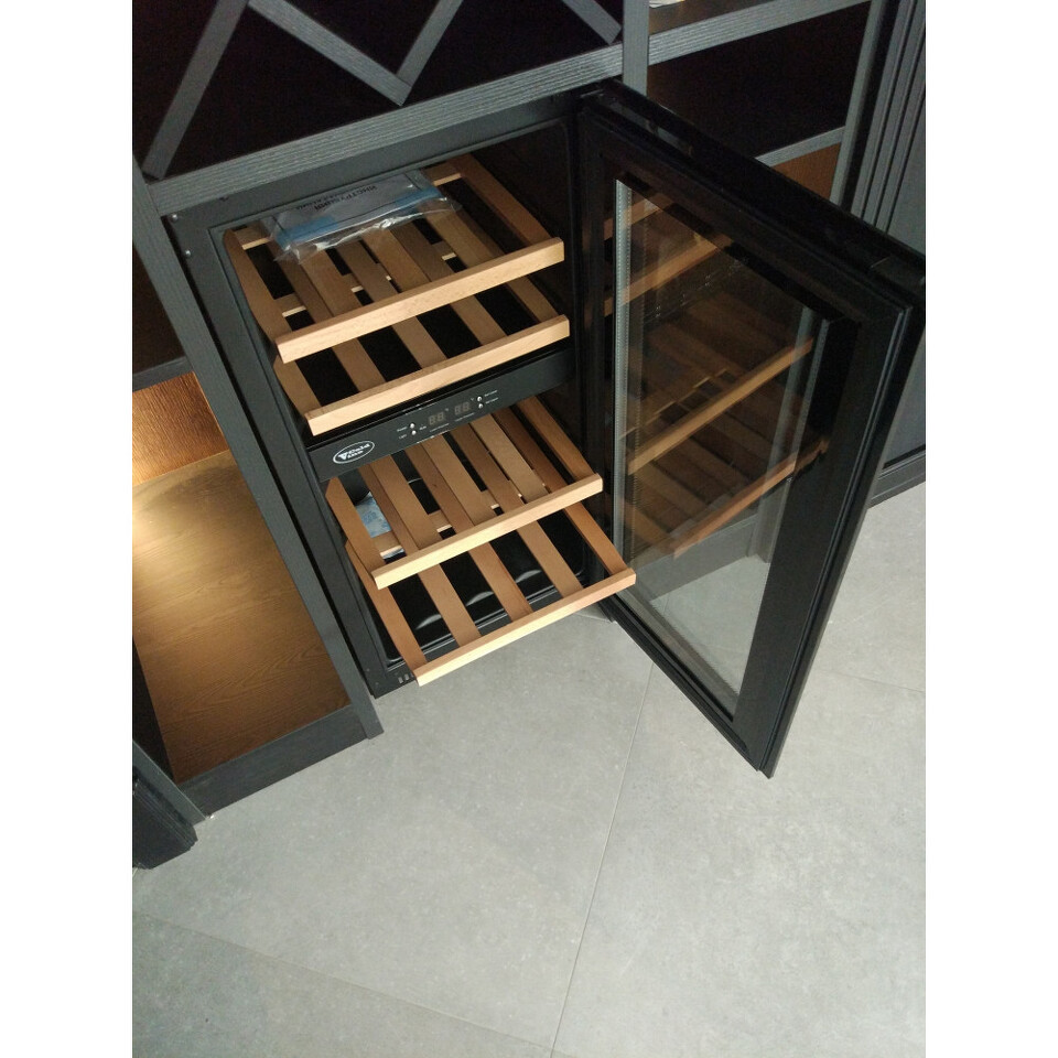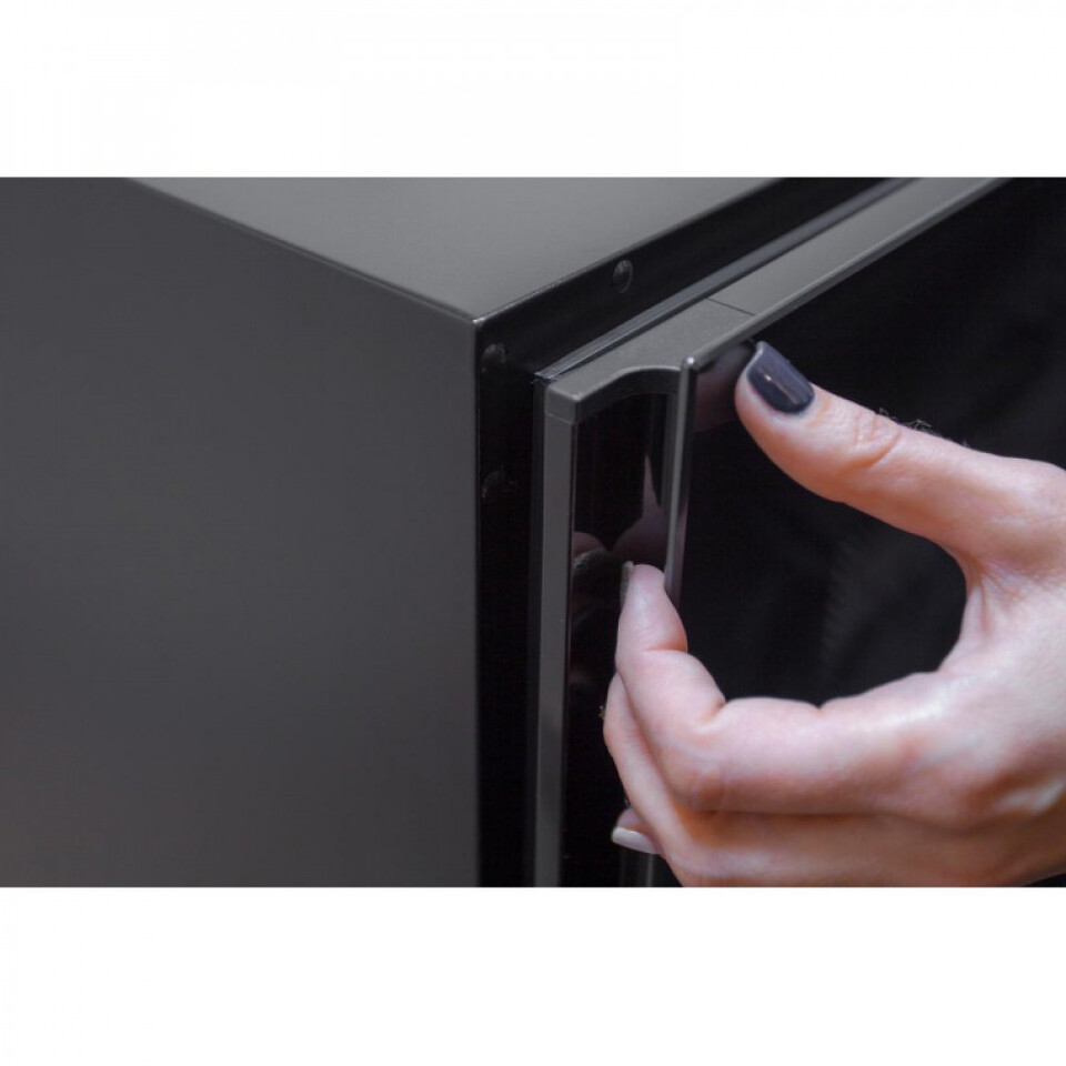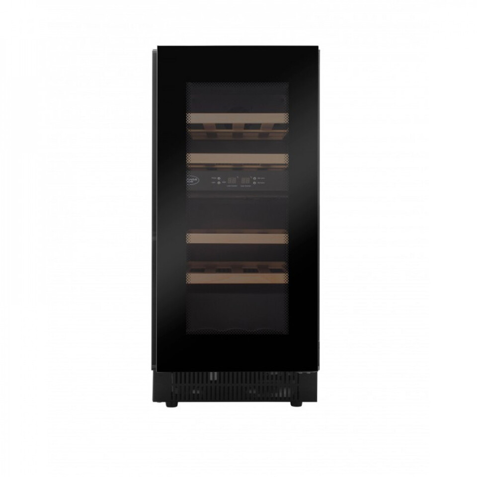 Представленная модель винного шкафа C23-KBT2 является тем самым незаменимым помощником в вопросе хранения вина. Вместимость данного шкафа составляет 23 бутылки типа Бордо объемом 0, 75л. Так как шкаф является двухзонным, вы можете разместить в нем несколько видов вина в специальных, подходящих именно для них условиях. Верхняя зона вмещает в себя 8 бутылок, нижняя – 15. Располагаются вина на четырёх нелакированных деревянных полках, две из которых находятся в верхней зоне, и, соответственно, две в нижней. Одним из важных нюансов является тот факт, что данный винный шкаф - компрессорный, то есть охлаждение данной модели происходит благодаря современному компрессору.Вы можете использовать данный шкаф как отдельностоящий, так и как встраиваемый. Ширина винного шкафа составляет всего 380 мм, что позволяет его встроить в ограниченное пространство кухни. Данная модель оснащена специальной светодиодной подсветкой синего цвета в каждой зоне.Еще одной отличительной особенностью является наличие угольного фильтра, что обеспечивает отсутствие посторонних запахов внутри холодильника. Дверца шкафа имеет функцию перенавешивания ее с одной стороны на другую, что позволяет вам значительно сэкономить свободное пространство и сделать использование шкафа максимально удобным. Корпус винного шкафа выполнен из стали, окрашенной в чёрной цвет.Дверца стеклянная с тонировкой и чёрной рамой,ручка на двери расположена сбоку и позволяет очень легко и удобно открывать шкаф.