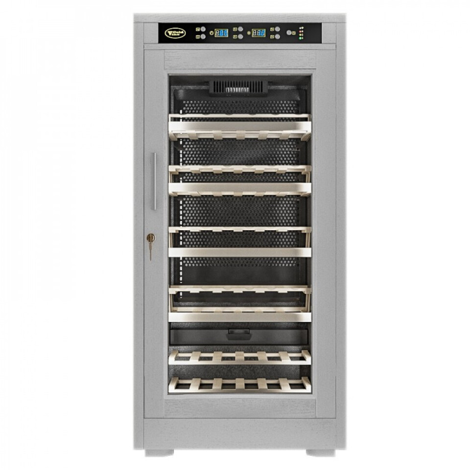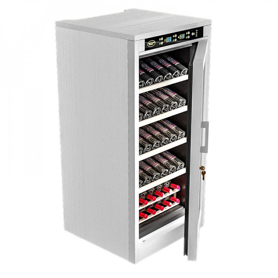 Классический винный шкаф Cold Vine C66-WW1 (Modern) является стильным дополнением к вашему дому и прекрасным помощником в вопросе хранения вина. Объем данного шкафа составляет 200 литров, а это означает, что вы с легкостью можете разместить внутри него до 66 бутылок вина типа Бордо объемом по 0, 75 литра. Данная модель является отдельностоящей, а это означает что у вас появится не просто многофункциональный помощник, но также и стильное дополнение к вашему интерьеру. Данный винный шкаф не подразумевает разделения на зоны, соответственно, вы можете разместить в нем вина только одного типа. Температурный режим может быть выставлен любой в диапазоне от +5 до +22 ˚С. Уникальная опция линейки данных шкафов - наличие цифрового контроля влажности. Тип охлаждения - компрессорный. Корпус данного винного шкафа выполнен из натурального дерева белого цвета (шпон дуба). В базовой комплектации имеются деревянные выкатные полки в количестве 5 штук.