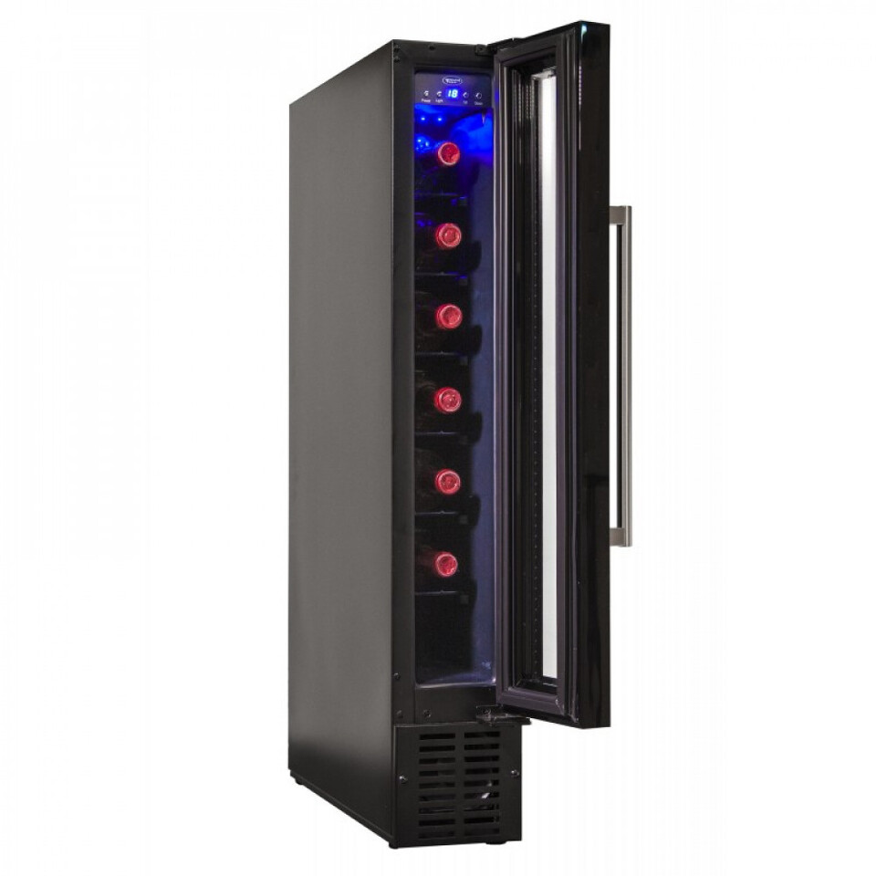 Компактный и элегантный винный шкаф Cold Vine C7-KBT1 на 7 бутылок вина с одной температурной зоной. Модель оснащена внутренним вентилятором для равномерного доступа холодного воздуха ко всем полкам шкафа и внешним вентилятором для быстрого эффективного охлаждения компрессора. Комплектуется холодильник C7-KBT1 шестью металлическими полками. В его верхней части находится электронная панель, с помощью которой пользователь выбирает необходимый температурный режим работы аппарата. На ней расположены кнопки для регулировки температуры и включения освещения.