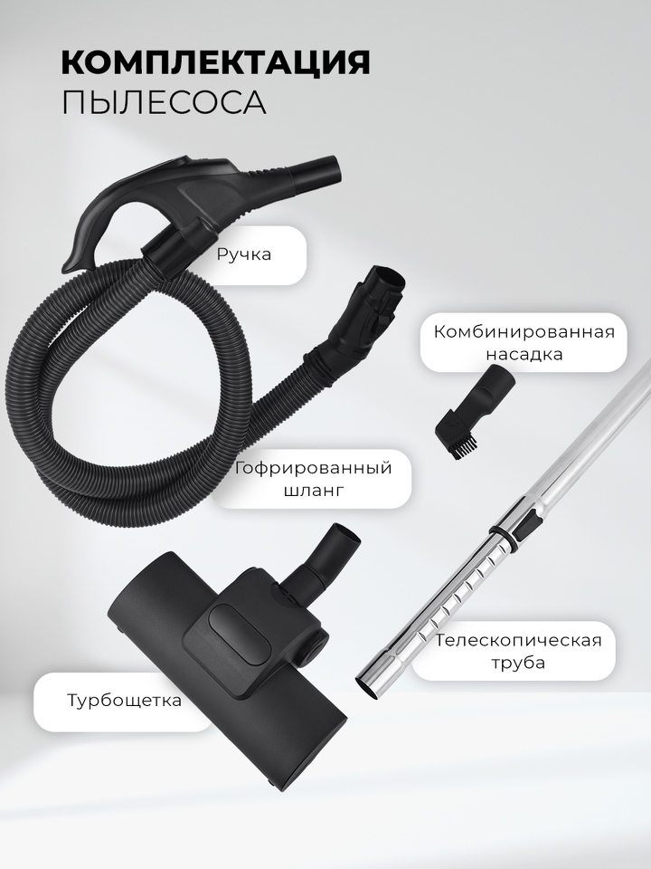 Гофрированный шланг, Телескопическая трубка, Турбощетка, Щелевая насадка