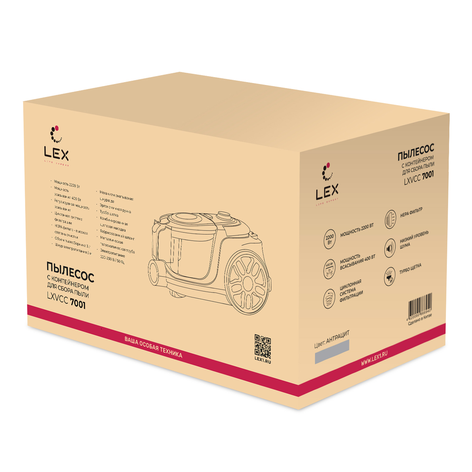 Пылесос Lex LXVCC 7001 пылесос, безмешковый, сухой уборки 2200Вт