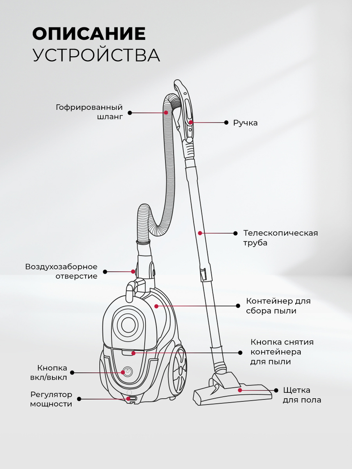 Гофрированный шланг, Телескопическая трубка, Турбощетка, Щелевая насадка