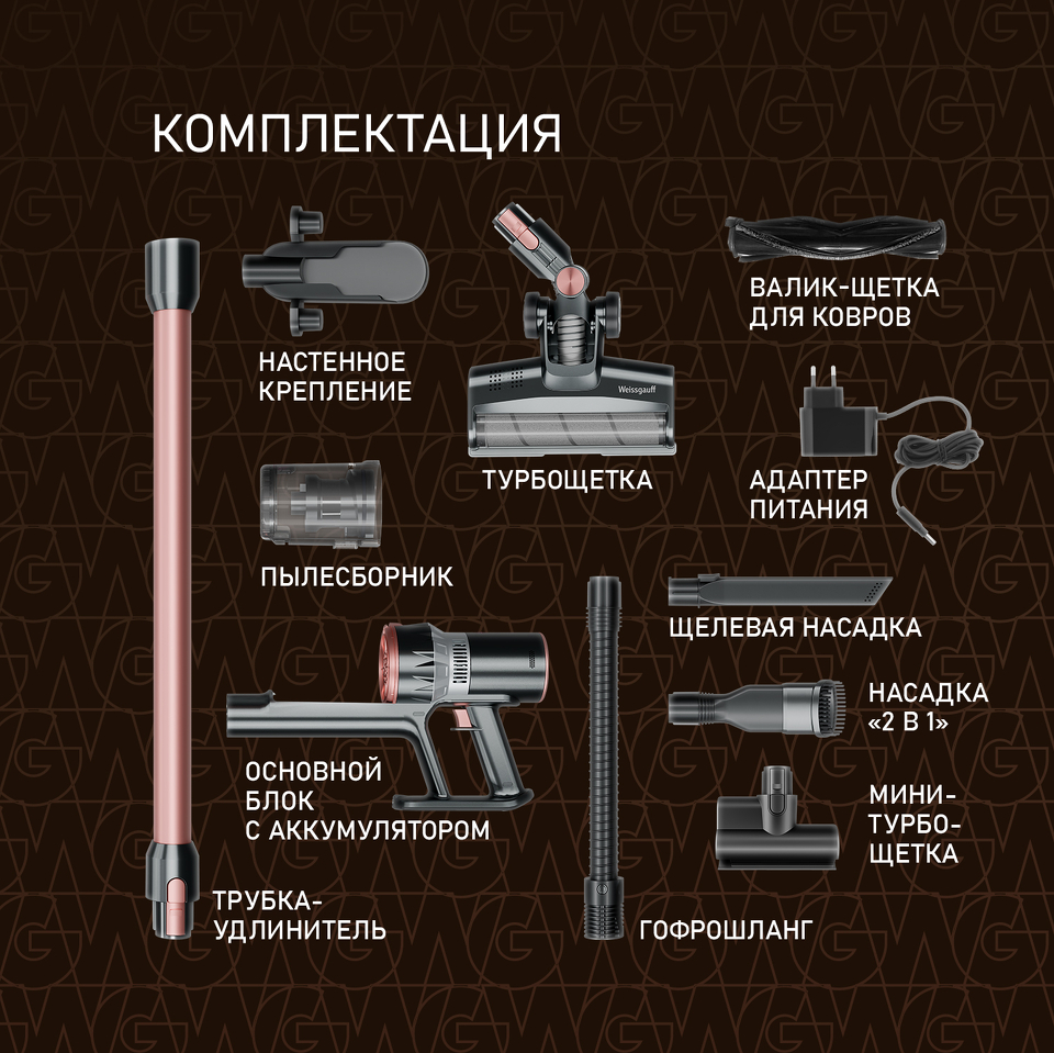 Пылесос Weissgauff V12 BLDC 500 Ora Rosa Turbo