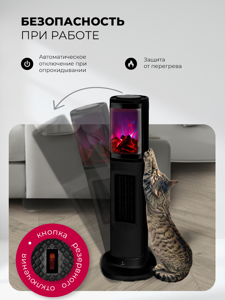 Фото Вентилятор Lex LXCR 1525,обогреватель керамический, с очагом 2000Вт ( черный)