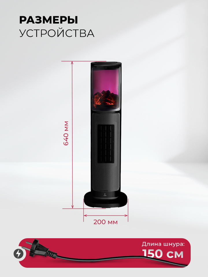 Вентилятор Lex LXCR 1525,обогреватель керамический, с очагом 2000Вт ( черный)
