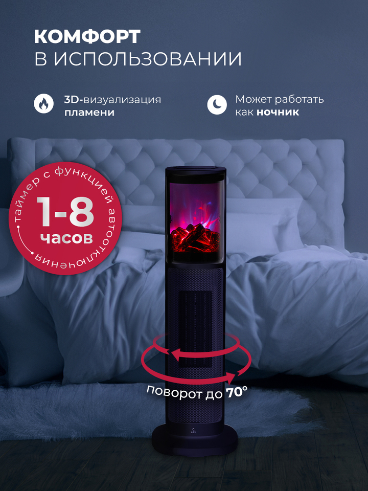 Lex LXCR 1525,обогреватель керамический, с очагом 2000Вт ( черный)