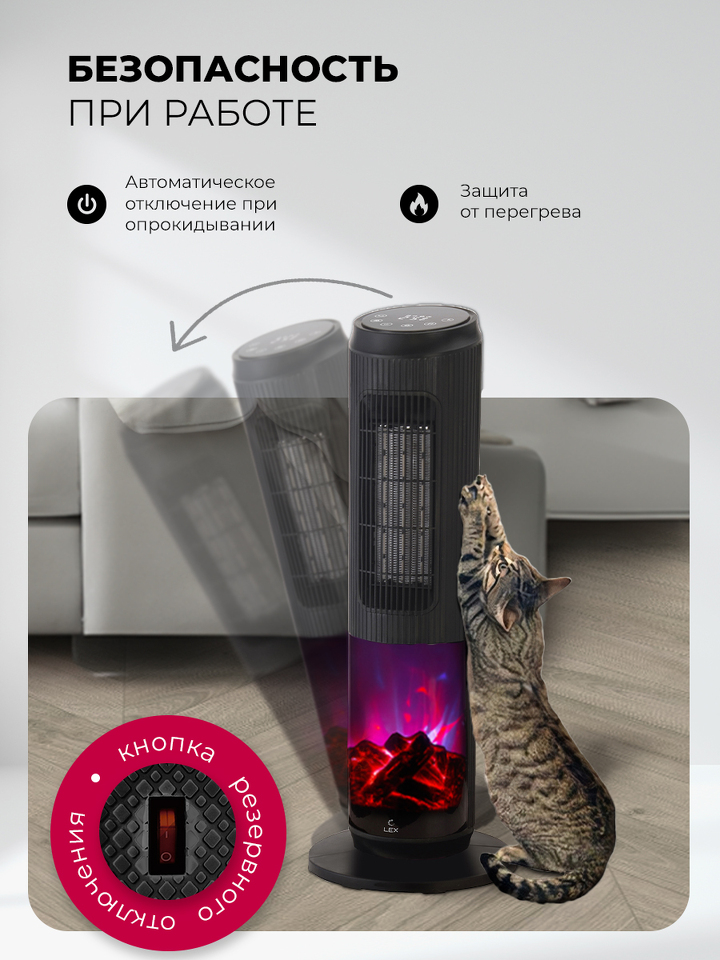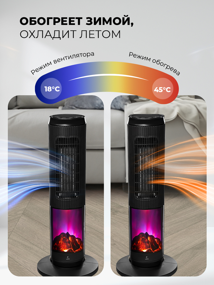 Фото Вентилятор Lex LXCR 1526,обогреватель керамический, с очагом 2000Вт ( черный)