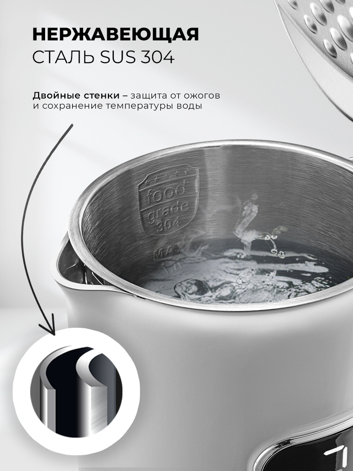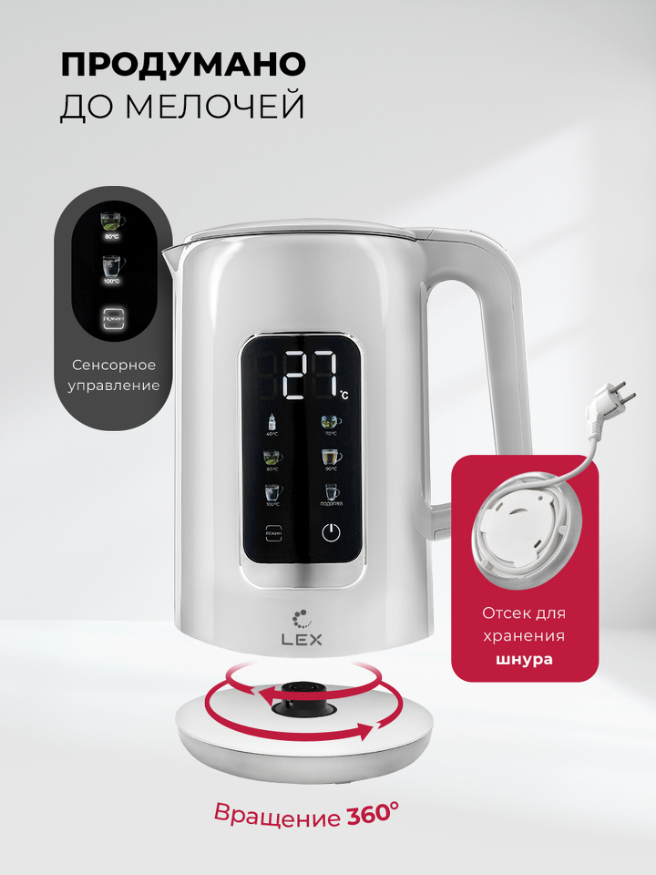 Чайник Lex LXK 30025-1, чайник стальной с двойнами стенками ( белый)