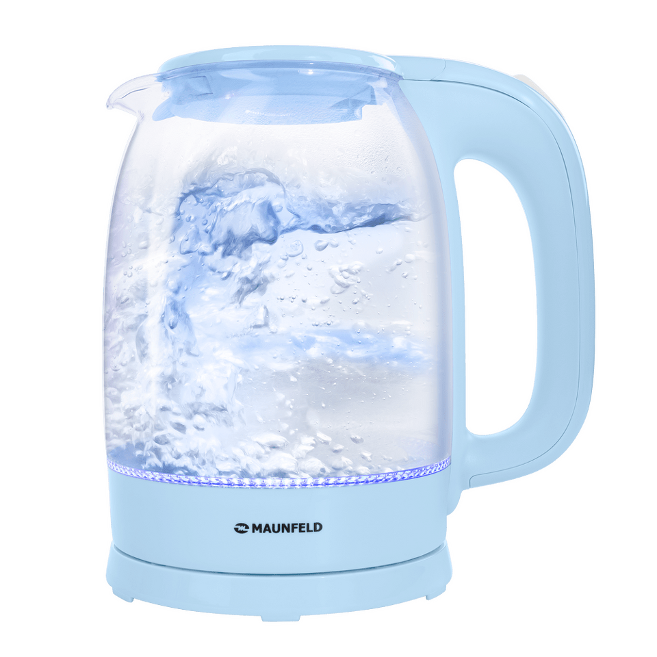 Подсветка голубого цвета вокруг нагревательного элемента красиво подсвечивает воду и служит индикацией работы чайника.