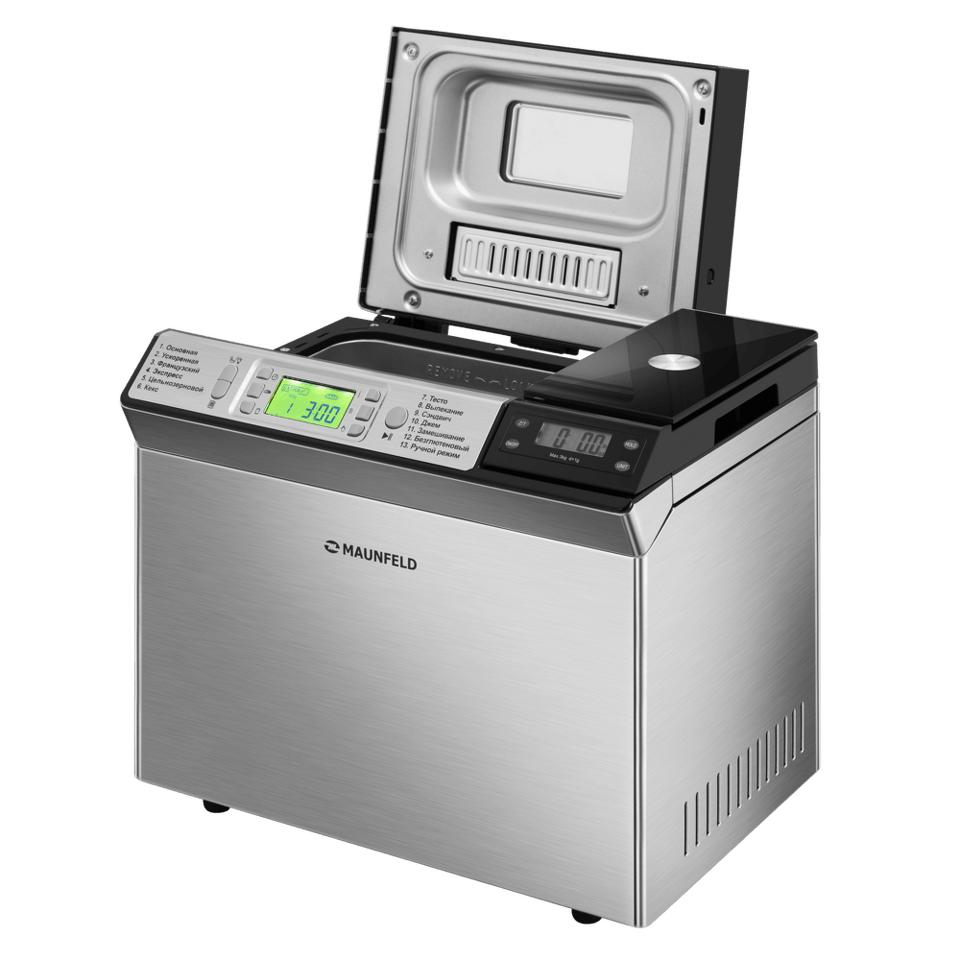 Хлебопечь MAUNFELD MBM-900DSS оснащена удобным диспенсером. Начинка автоматически будет добавлена в тесто на нужном этапе замеса. Не отвлекайтесь от своих дел, доверьтесь MAUNFELD.