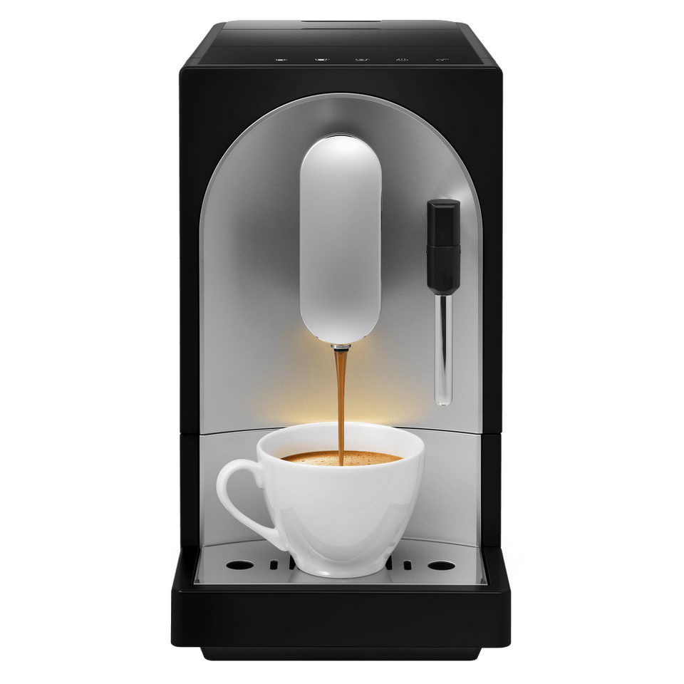 Узкая современная кофемашина с сенсорным управлением, которая позволит быстро и удобно приготовить превосходный ароматный кофе из свежемолотого зерна.