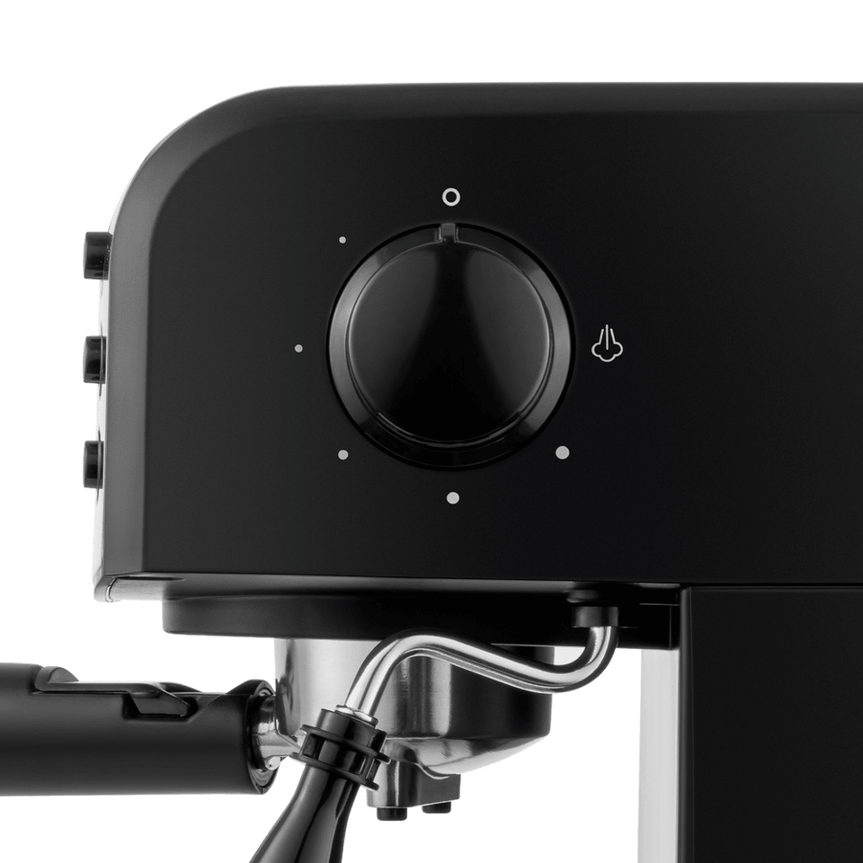 Современная рожковая кофемашина мощностью до 850 Вт из нержавеющей стали и черного пластика – это исполненная мечта кофемана. Давление в 15 бар, создаваемое в кофеварке, позволит получить прекрасный кофе за несколько секунд. Большой контейнер для воды на 1,5 л сделан из матового пластика.