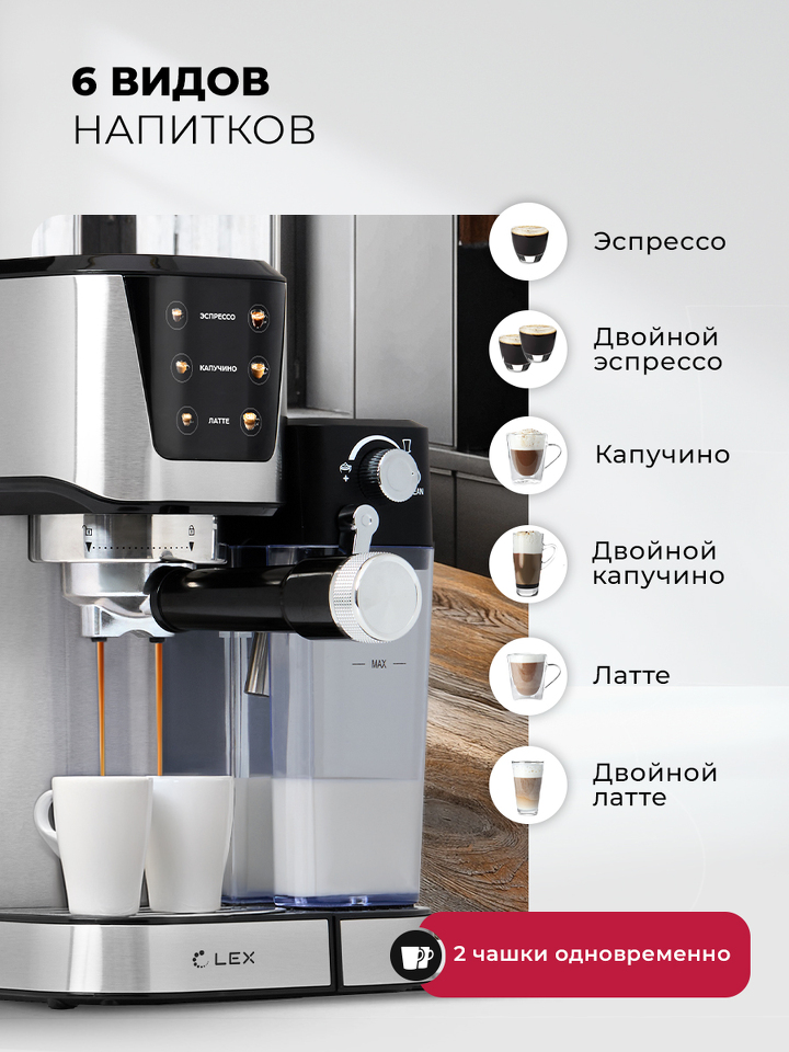 Рожок с держателем фильтра, Мерная ложка с уплотнителем молотого кофе, Металлические фильтры для кофе (малый, большой)