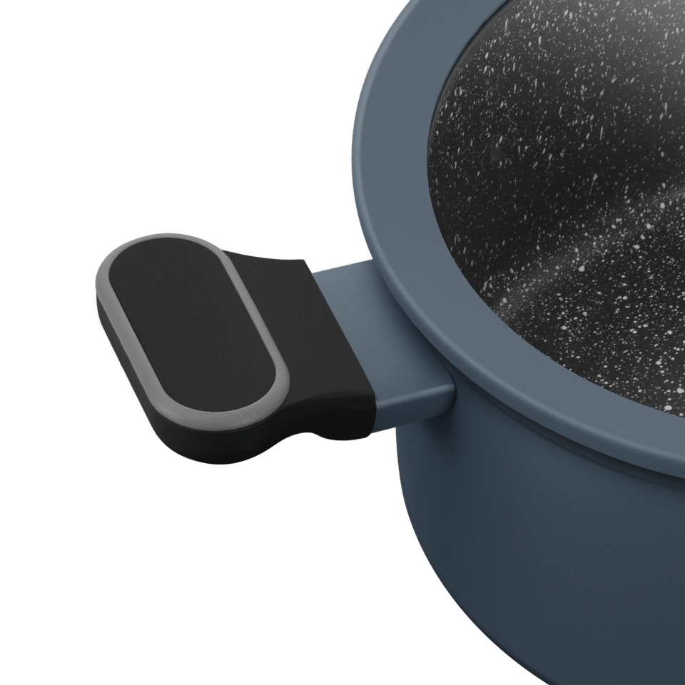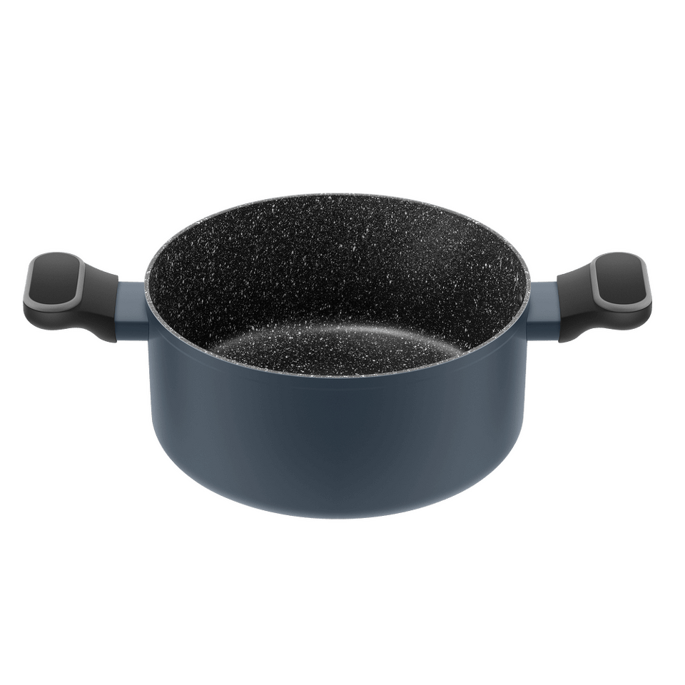 Мраморное антипригарное покрытие абсолютно инертно —это гарантирует, что в пищу не попадет никаких вредных примесей и веществ даже при воздействии очень высоких температур. Поверхность посуды не подвержена загрязнениям и не впитывает запахи.