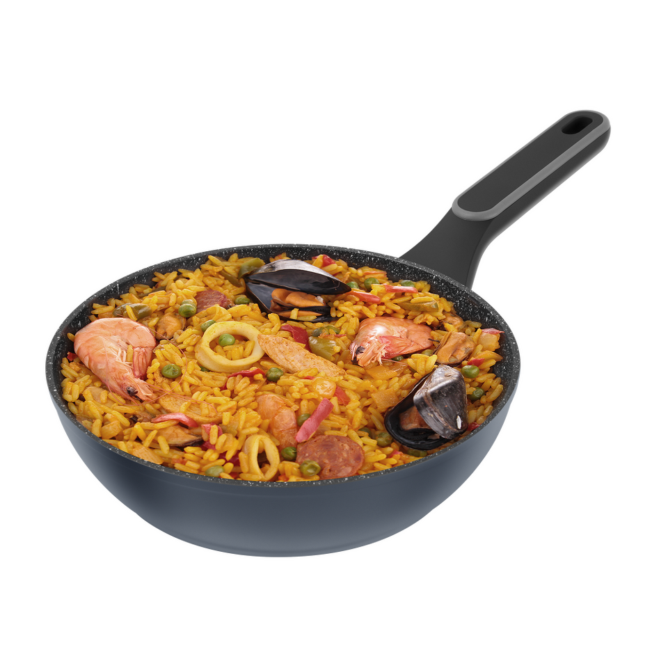 Глубокая сковорода Frida оснащена удобной удлиненной ручкой soft touch, которая не нагревается, не скользит и обеспечивает безопасность при использовании. Ручка выполнена из специального термостойкого материала бакелит, который не только приятен на ощупь, но и долговечен. Благодаря мраморному антипригарному покрытию, поверхность сковороды не подвержена загрязнению и не впитывает запахов.
