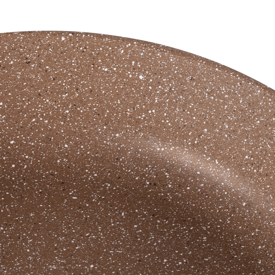 Сковорода с эффектным мраморным покрытием и современной ручкой в универсальном цвете, будет отлично сочетаться с любой кухней.