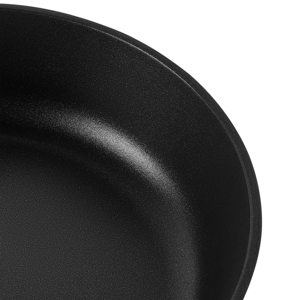 Устойчивое к царапинам, полностью безопасное антипригарное покрытие, позволяет готовить блюда без использования большого количества масла. Не содержит свинец и кадмий, без PFOA.