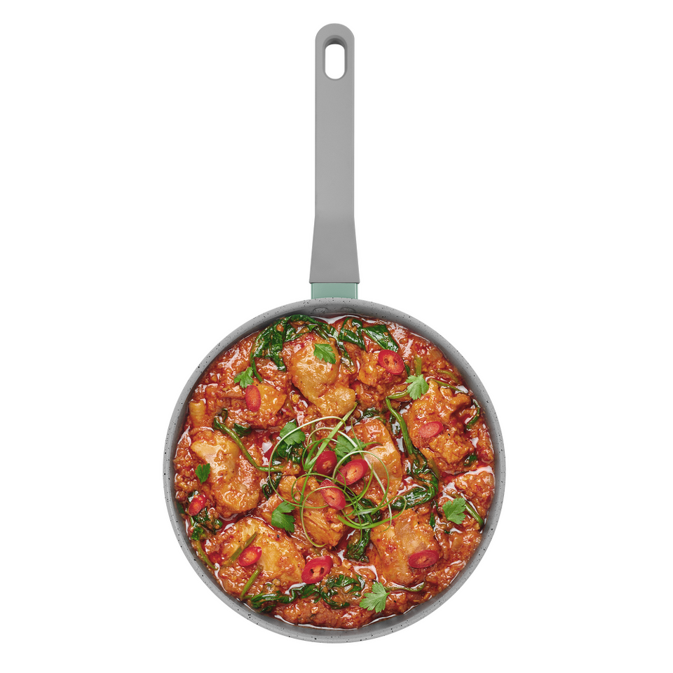 Мраморное антипригарное покрытие абсолютно инертно — это гарантирует, что в пищу не попадет никаких вредных примесей и веществ даже при воздействии очень высоких температур. Поверхность посуды не подвержена загрязнениям и не впитывает запахи.