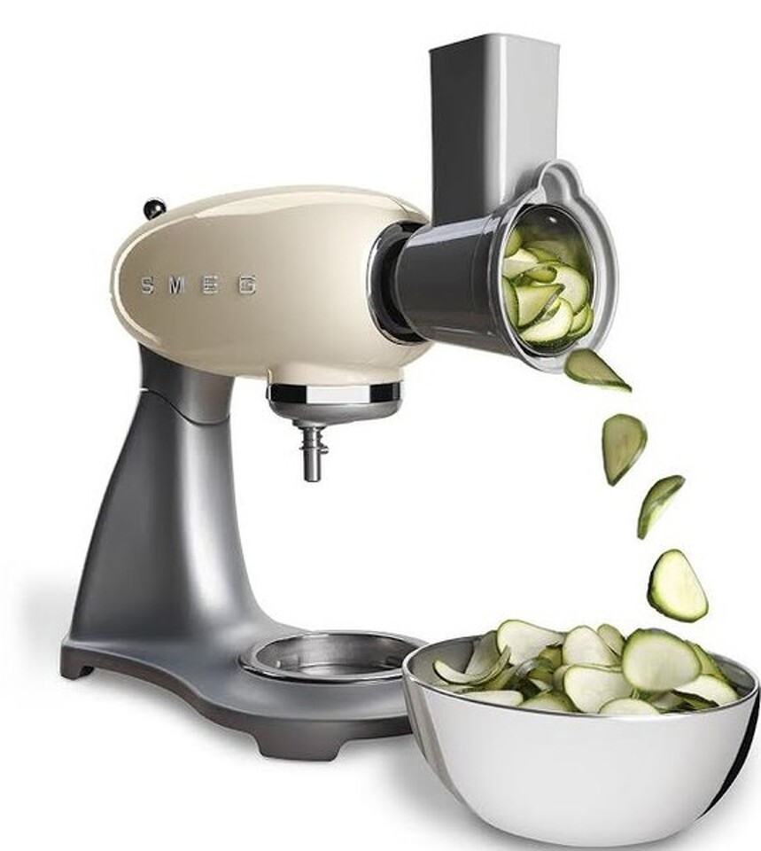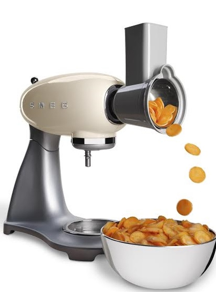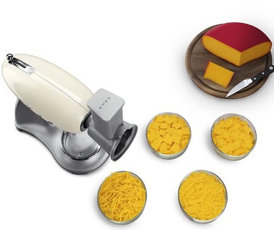Дополнительный аксессуар для планетарных миксеров SMEG серии SMF01, позволяет вам натереть или нарезать ингридиенты прямо в рядом стоящую миску. Многофункциональная насадка слайсер/терка В комплекте 4 барабана из нержавеющей стали для натирания и нарезки: крупная терка — 1 шт, мелкая терка — 1 шт, средняя нарезка — 1 шт, мелкая нарезка — 1 шт.