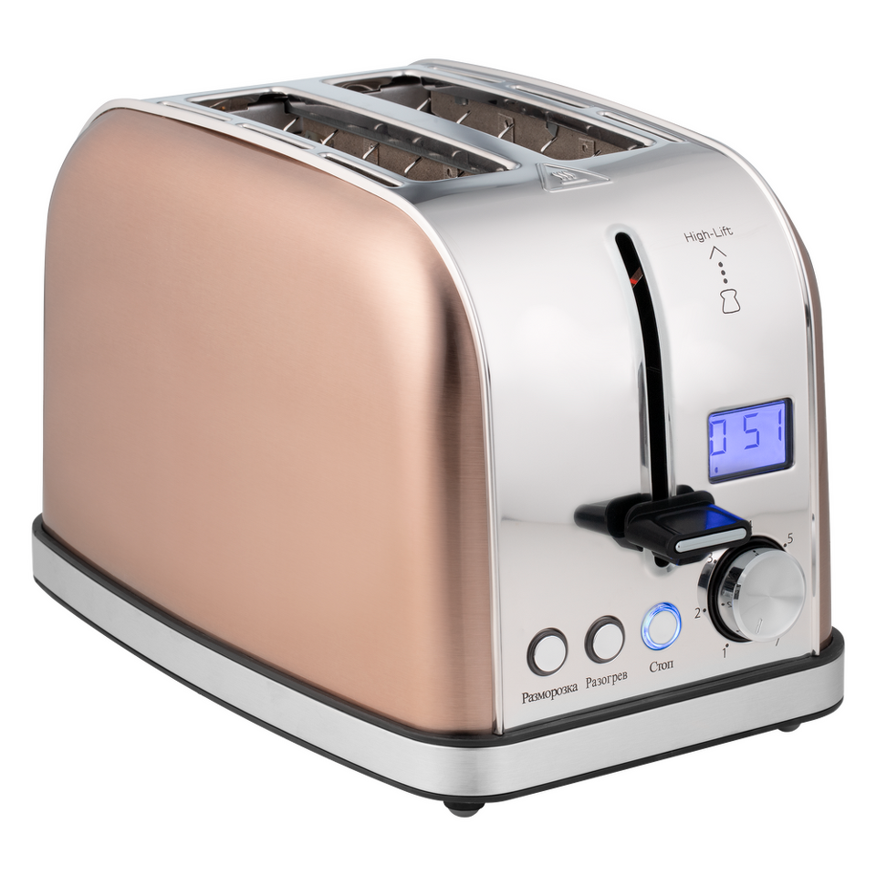 При приготовлении тостов с помощью регулятора выбираете одну из 7 возможных степеней обжарки, благодаря этому вы можете делать тосты из разных сортов хлеба (белого, зернового, черного и т.д.). Степень обжаривания отображается черточками на экране. Также на дисплее показывается обратный отсчет времени приготовления.