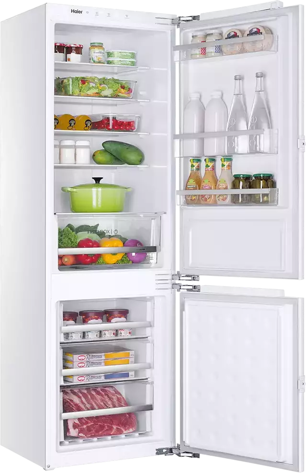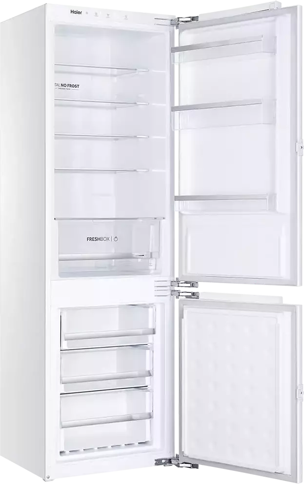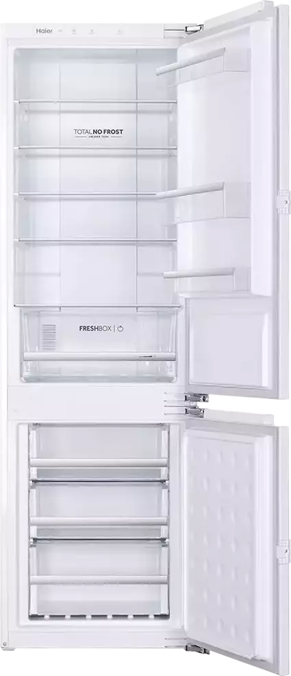 Встраиваемый HAIER BCFT528AWRU — отличный пример действительно современного и удобного холодильника высотой 177 см. Холодильник позволяет хранить одновременно много продуктов (холодильное отделение — 169 л, морозильное — 59 л), что важно для больших семей и для тех, кто любит готовить. Технология Total No Frost позволяет забыть о ручном размораживании — в обоих отделениях реализовано авторазмораживание. Надёжный компрессор обеспечивает бесперебойную работу холодильника при низком энергопотреблении — класс энергоэффективности А. Полки и контейнеры со стильной серебристой окантовкой придают внутреннему пространству модный и современный вид. Светодиодное (LED) освещение — яркое, долговечное и не влияет на температуру в холодильном отделении, в отличие от ламп накаливания. Интуитивно понятное сенсорное управление с дисплеем делает эксплуатацию холодильника максимально удобной. Встраиваемый холодильник HAIER BCFT528AWRU — это дополнительные возможности для экспериментов с дизайном кухни и качественное хранение продуктов.