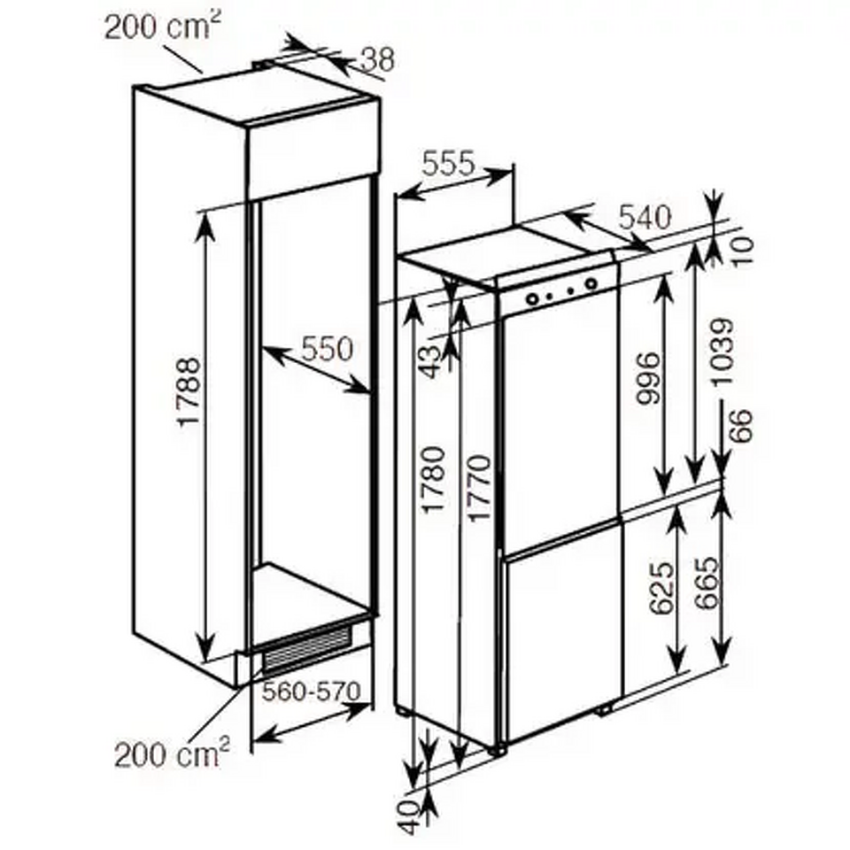 Высота ниши для установки, см 177