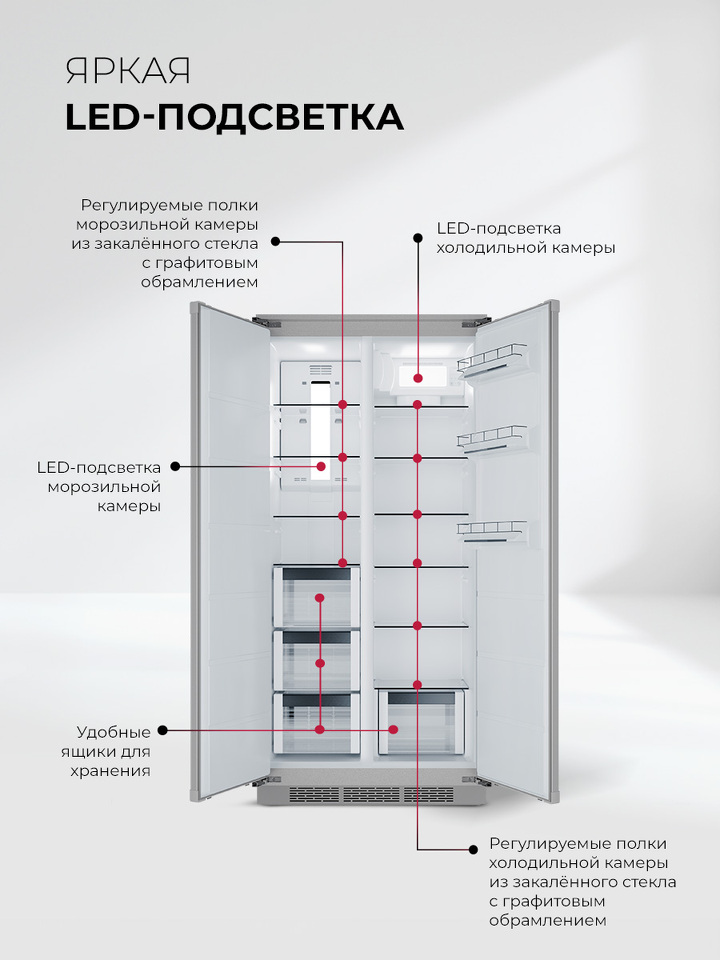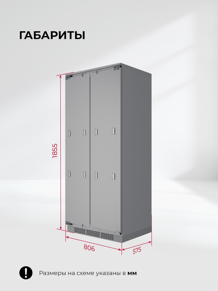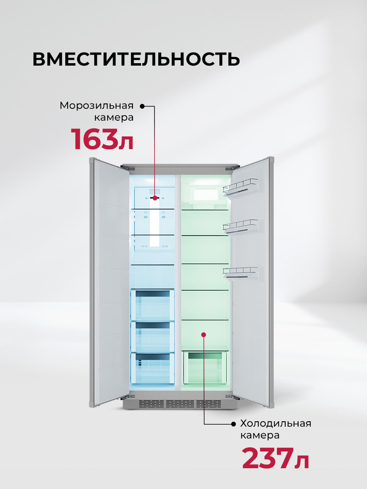 Холодильник двухкамерный встраиваемый Класс энергопотребления A+, полезный объем 400 л, холодильная камера 237л, морозильная камера 163л, Мощность замораживания - 6 кг/сутки, тип управления электронный, макс уровень шума 41 Дб, система разморозки Total No Frost, Быстрое замораживание, быстрое охлаждение, Тип компрессора – Инверторный, цвет серый Размер устройства (ВхШхГ) - 1855 × 806 × 575 мм.